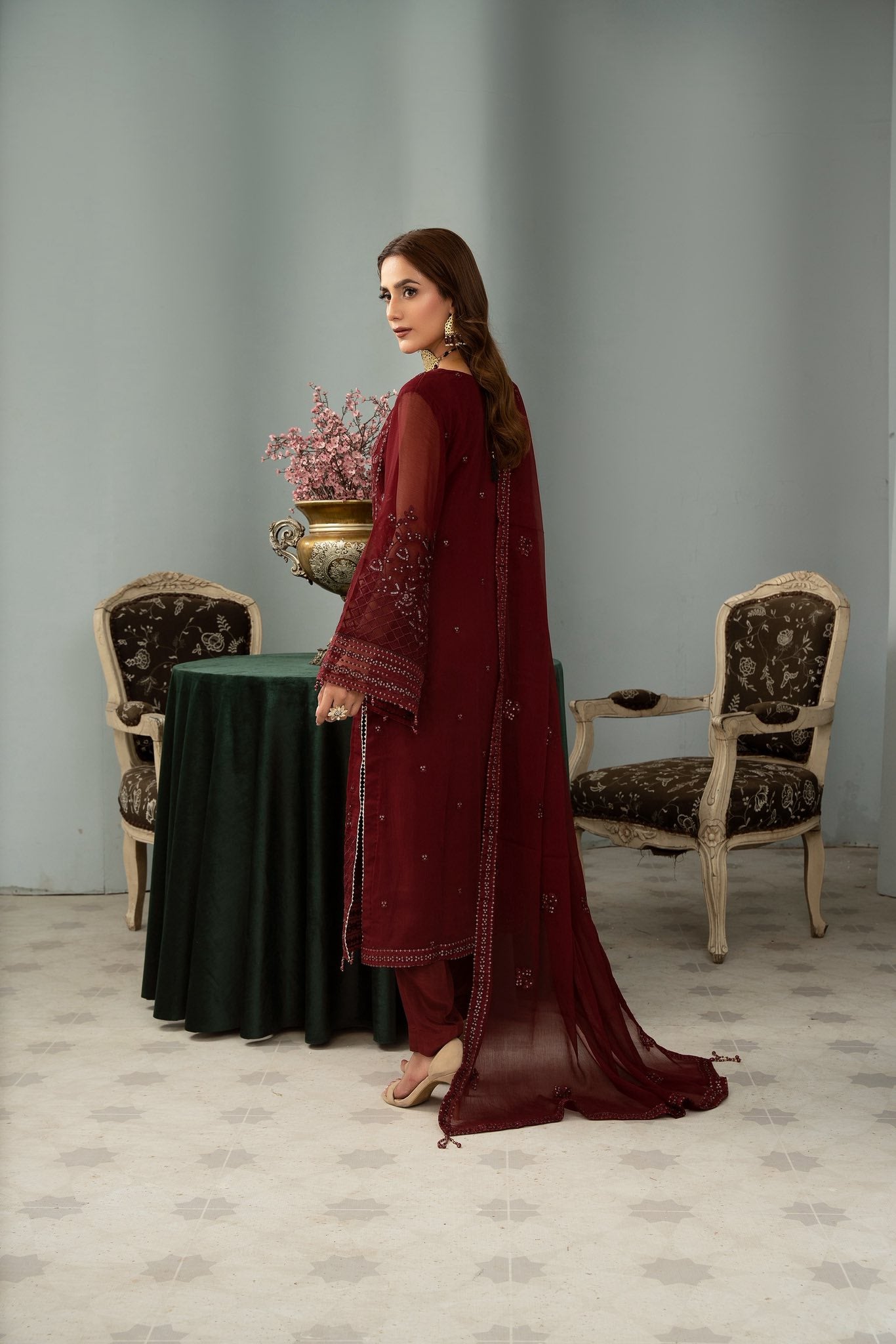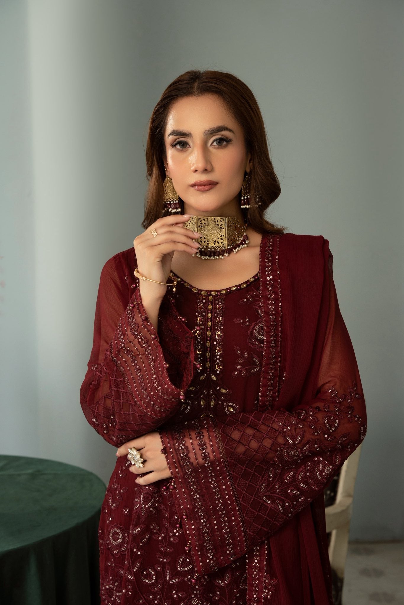 AFSHAN ARTS SANGEET LUXURY CHIFFON FORMAL 3PC SEMI STITCHED COLLECTION D-5