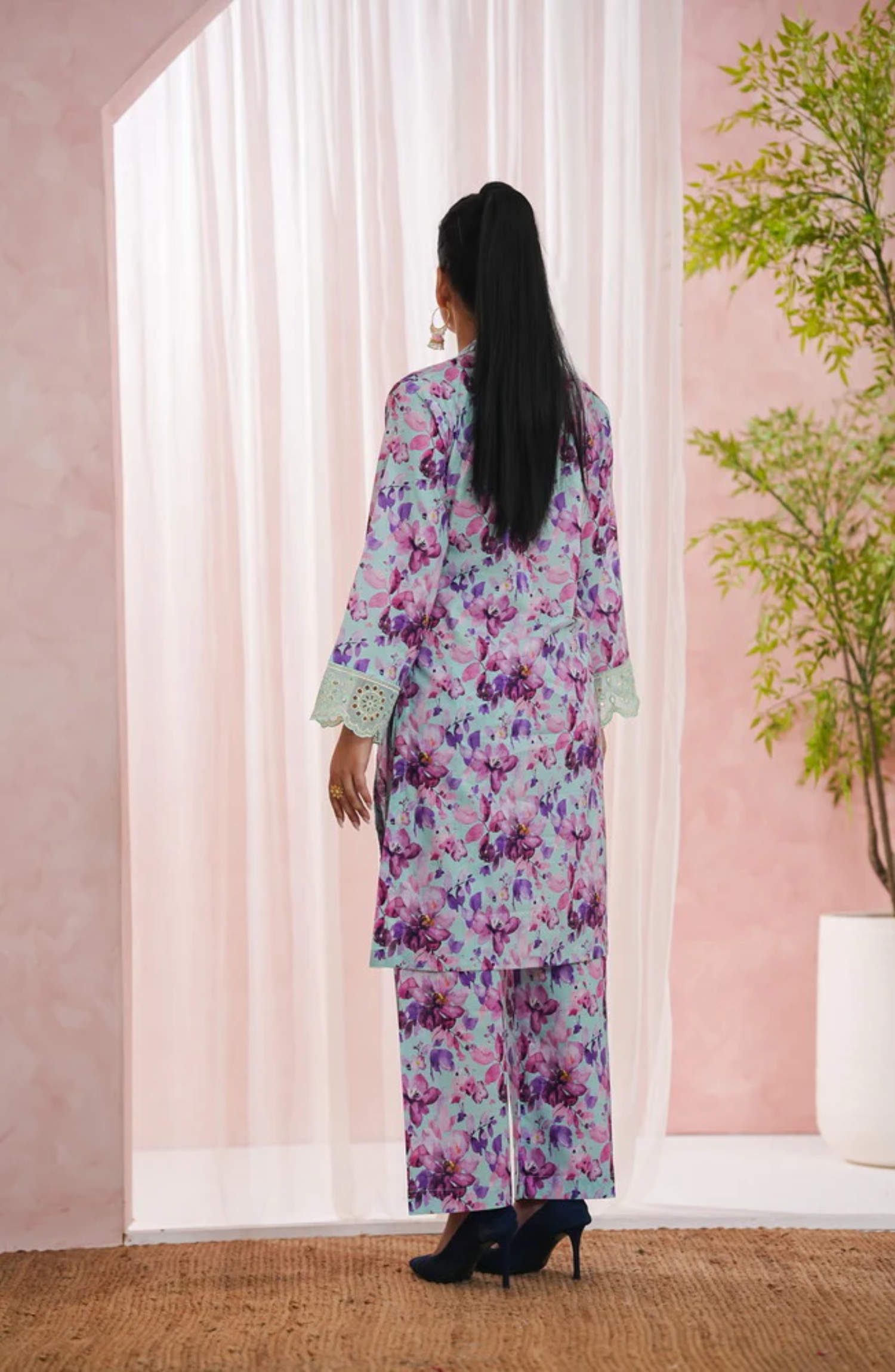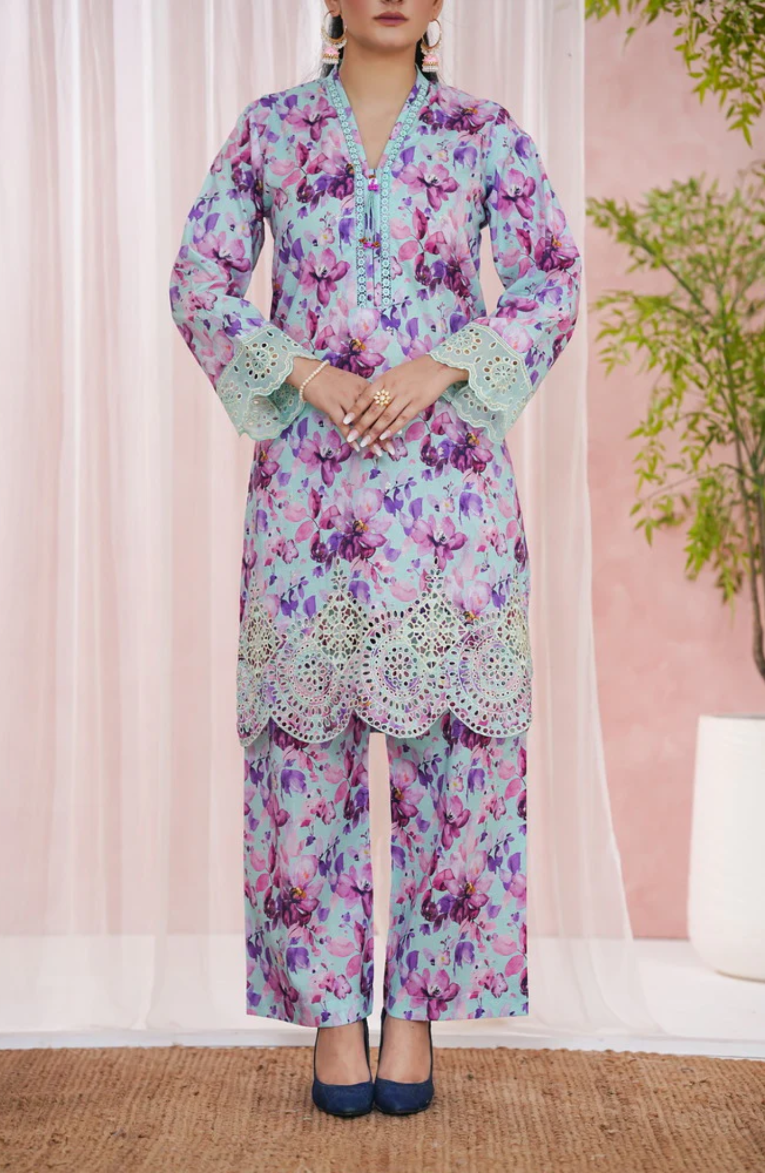 A stylish ready-to-wear festive co-ord set featuring an embroidered and printed lawn shirt paired with a matching...