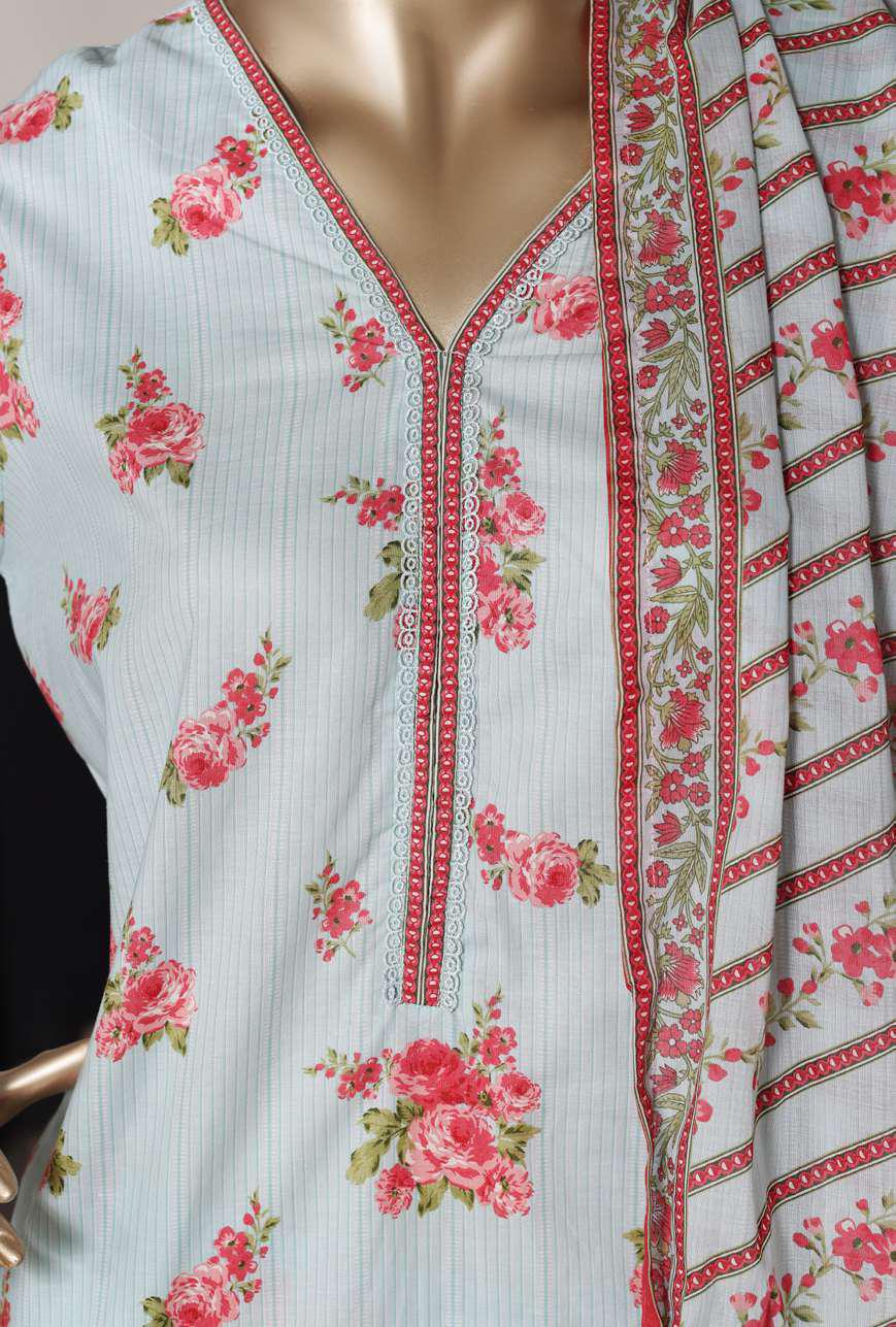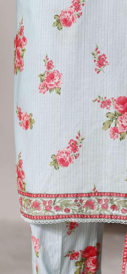• Printed Lawn Long Shirt with Lace Work