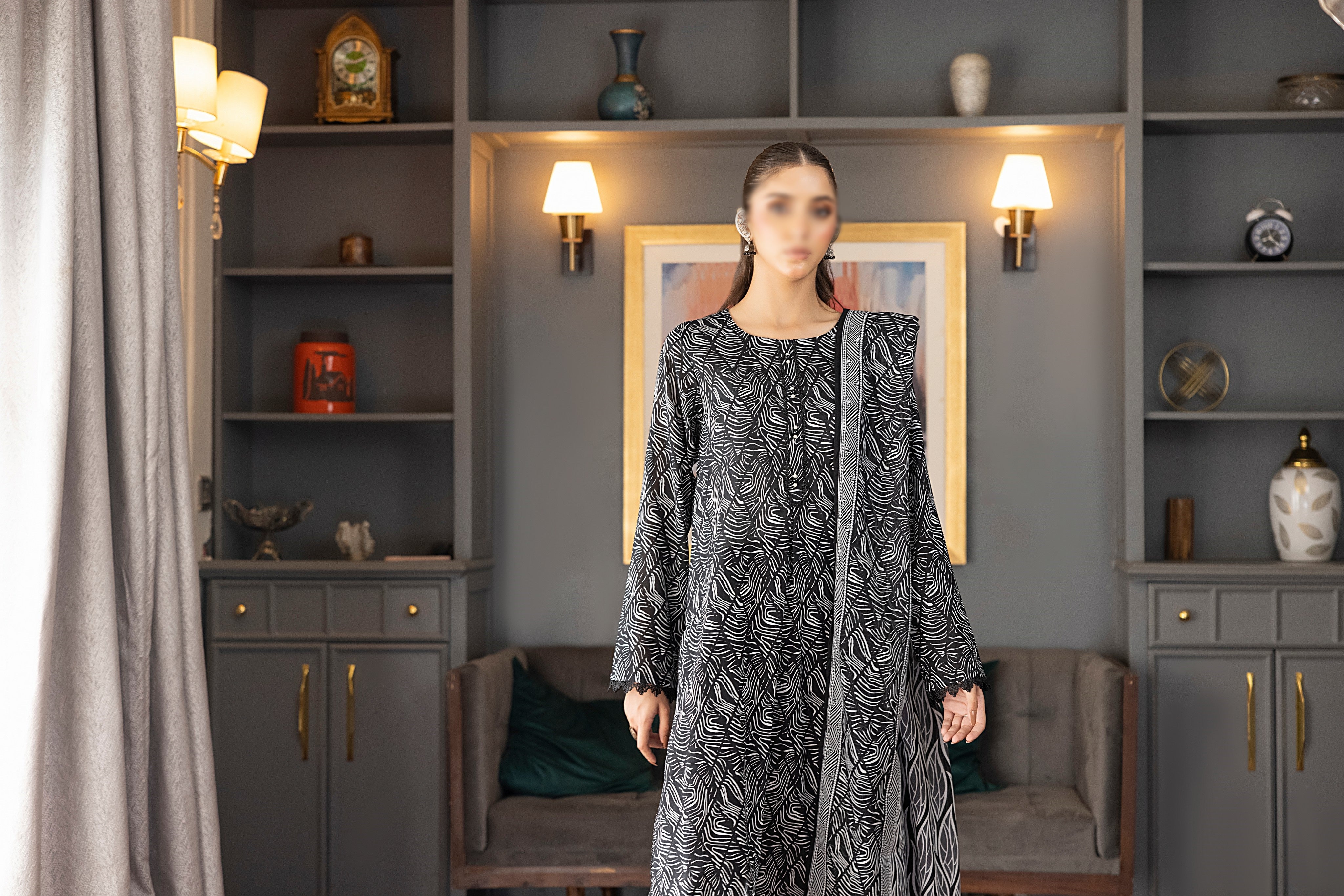Black & White Vol3 Salina Digital Print Un Stitched 3 Pcs By Regalia Textile D-6