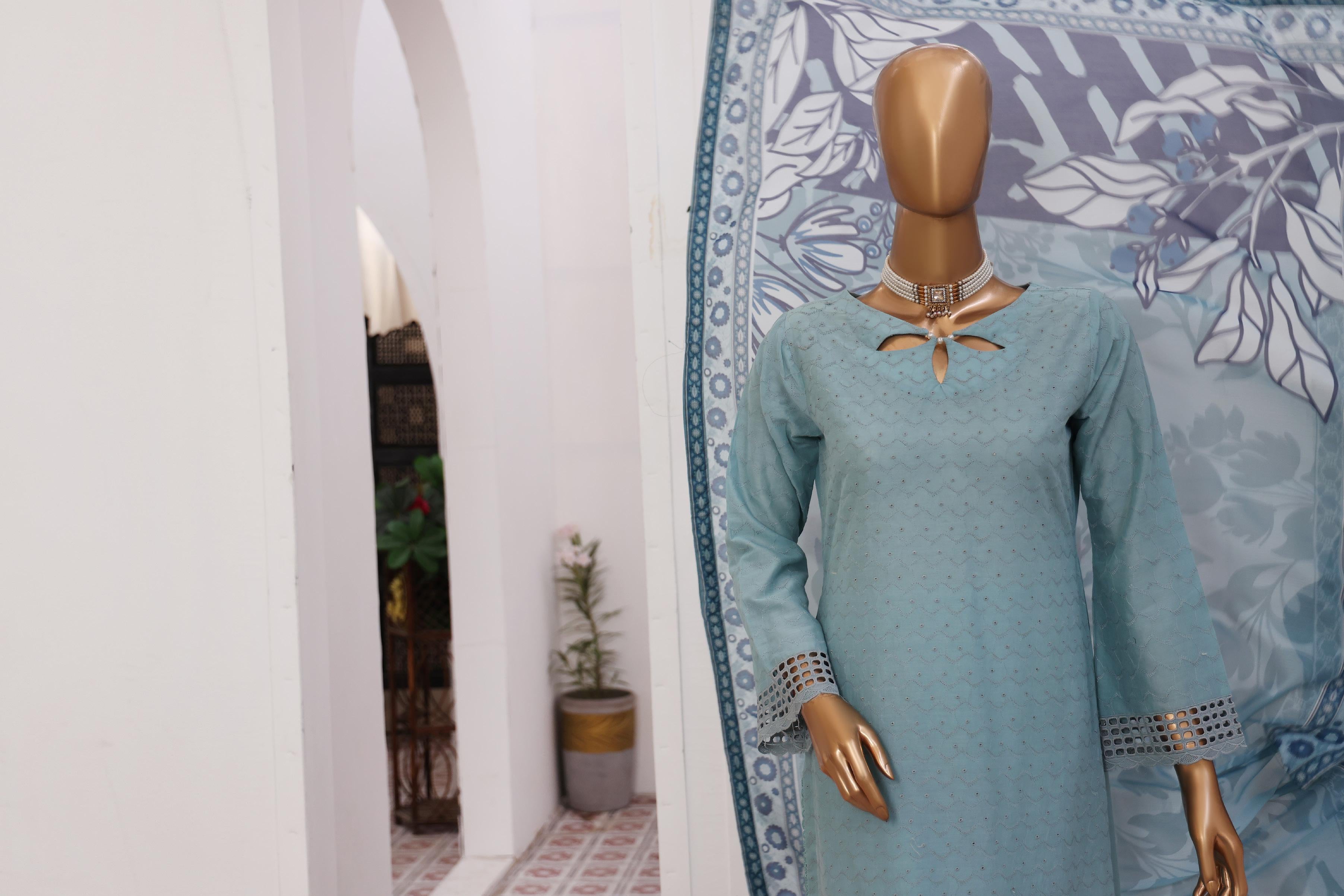 Bloom Un Stitched 3 Piece Suit By Dr.Haris Dyed  Unstitched Chikankari Lawn  Bloom Schiffli Lawn Fancy Duppata...