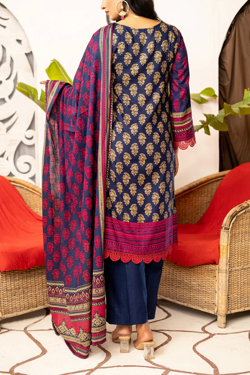 2.75 Meter Printed Mid Summer Cambric Un Stitched Shirt.2.25 Meter Printed Lawn Dupatta.2.5 Meter  Trouser. Un Stitched...