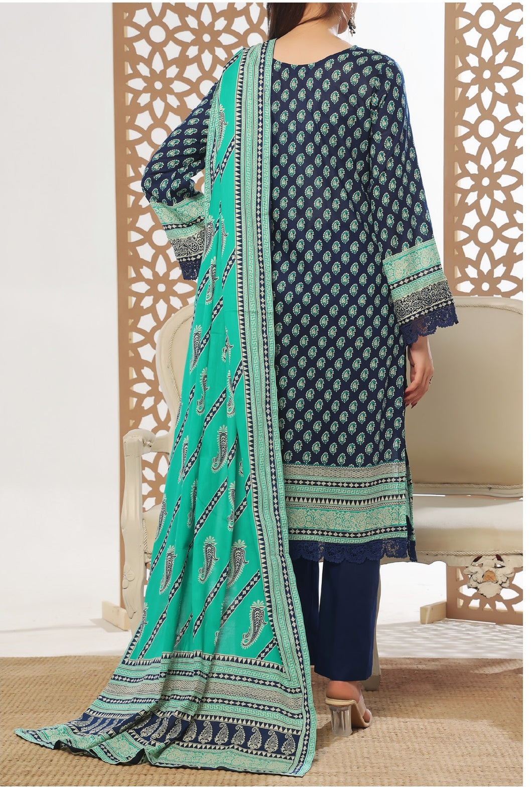 2.75 Meter Printed Lawn  Un Stitched Shirt.2.25 Meter Printed Lawn Dupatta.2.5 Meter  Trouser. Un Stitched DAMAN  THREE...