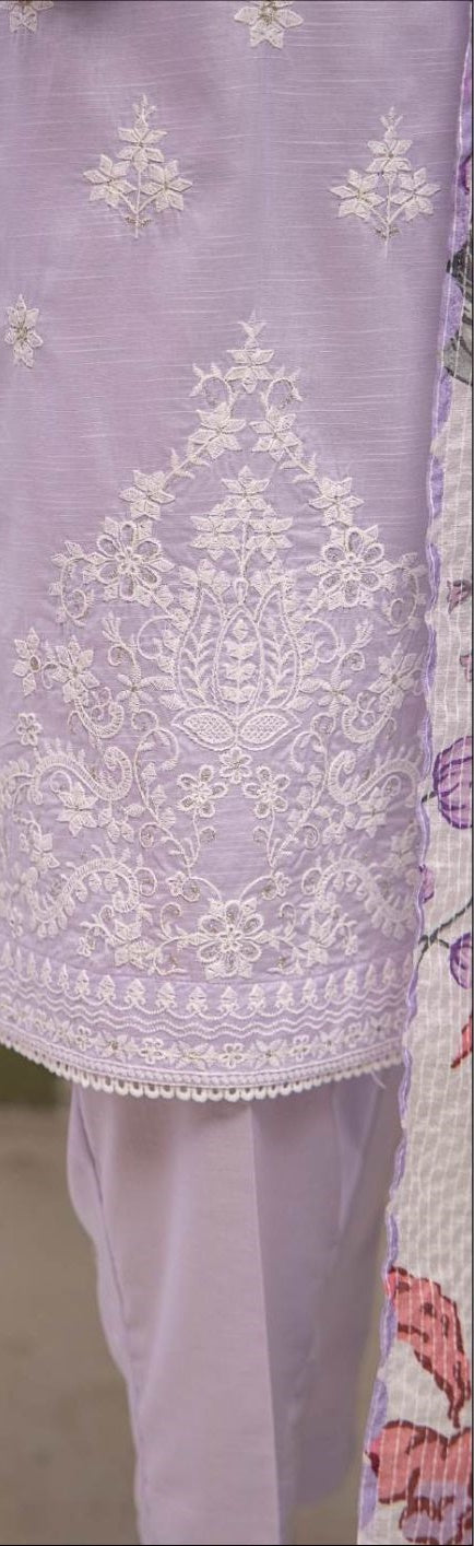 DASTAN SLUB LAWN EMBROIDERED COLLECTION VOL-03 BY HZ DYED SLUB LAWN HEAVY EMBROIDERED SHIRT  BAMBER CHIFFON/ MONARK...