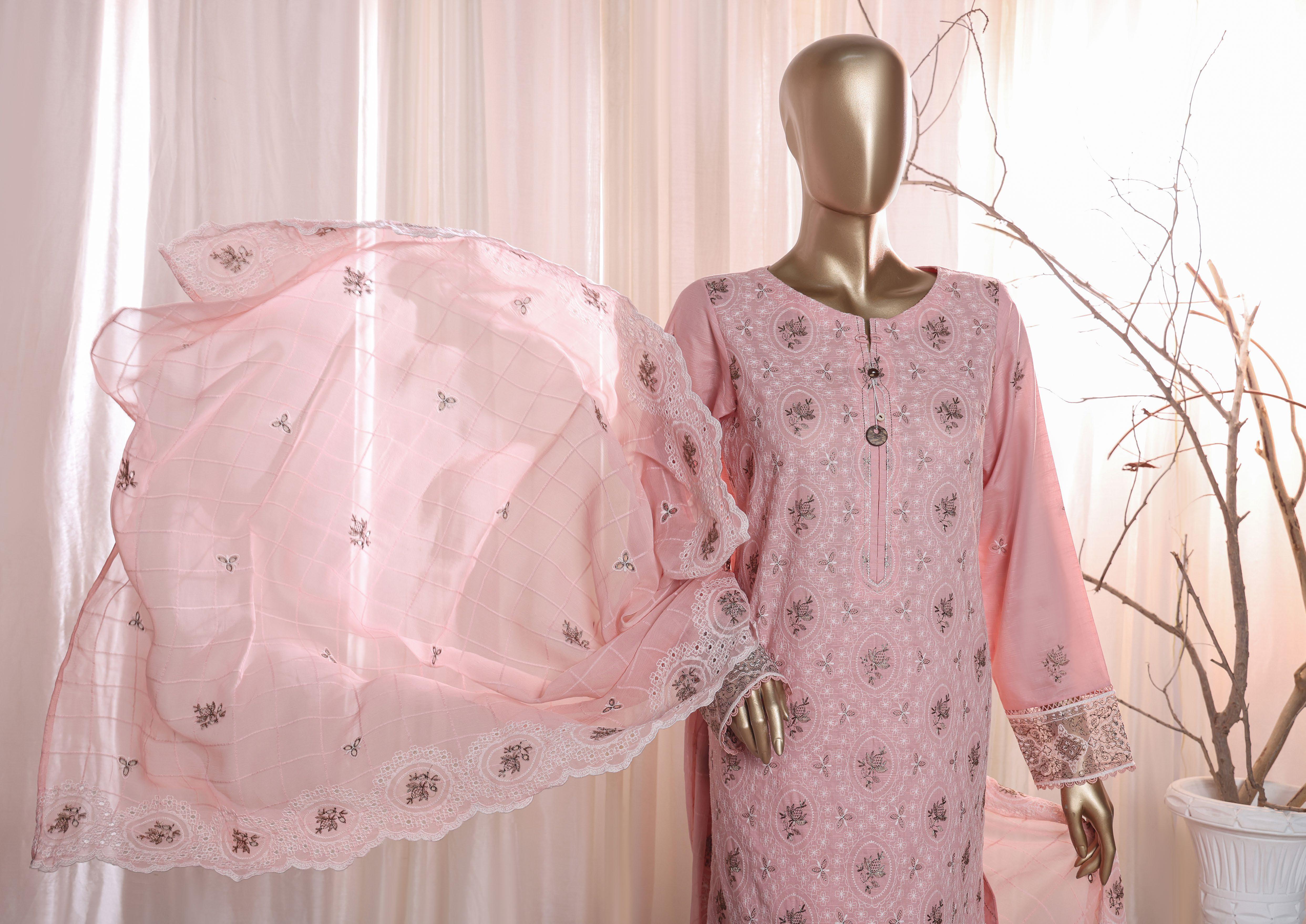 Details: Unstitched 3 Piece  Dyed Slub Lawn Heavy Embroidered Front & Sleeves  Dyed Chiffon Embroidered Dupatta  Dyed...