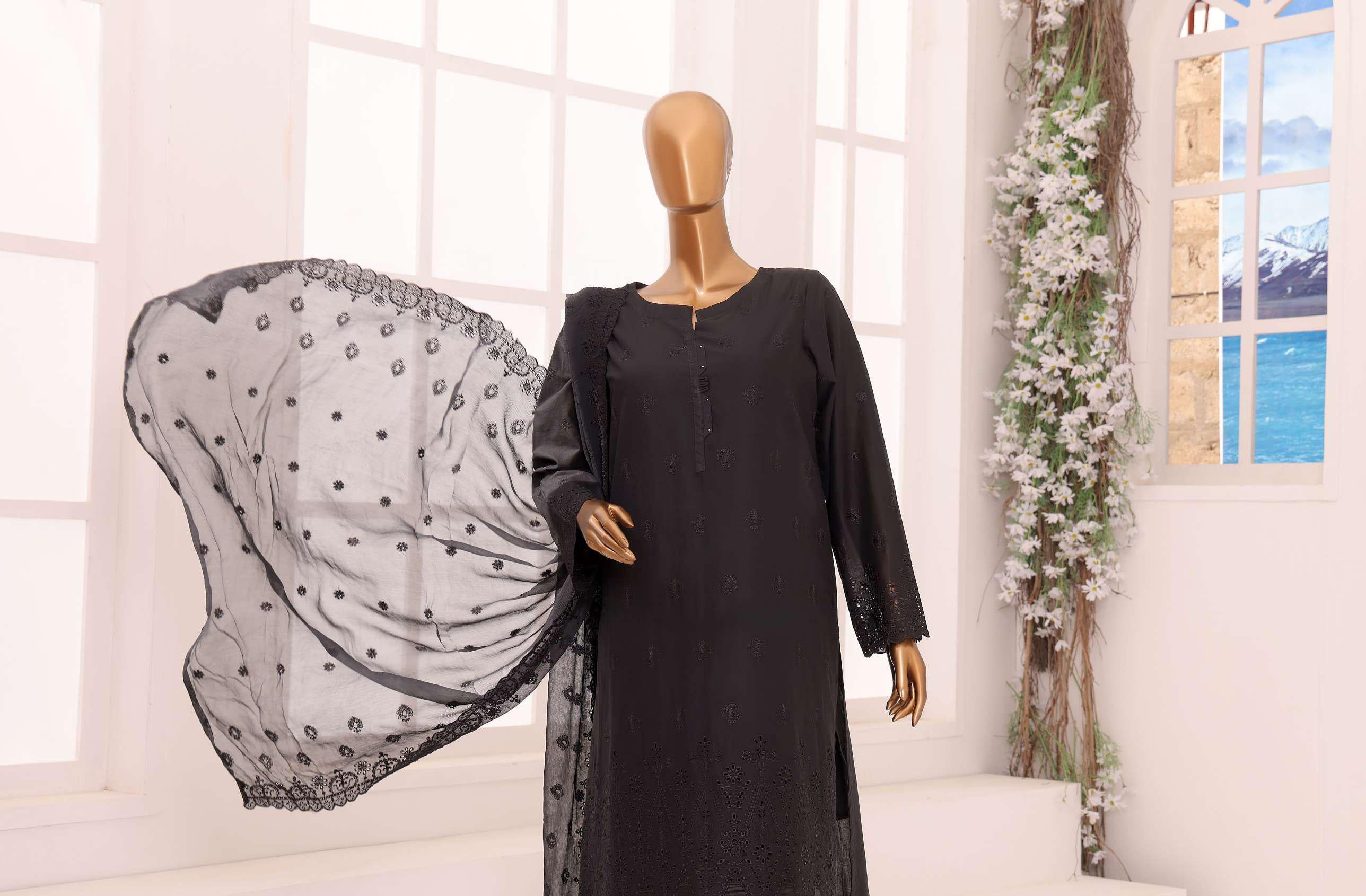 Dynasty Chikankari with Chiffon Dupatta by HZ-2025 D-05 - Black - Summer Collection