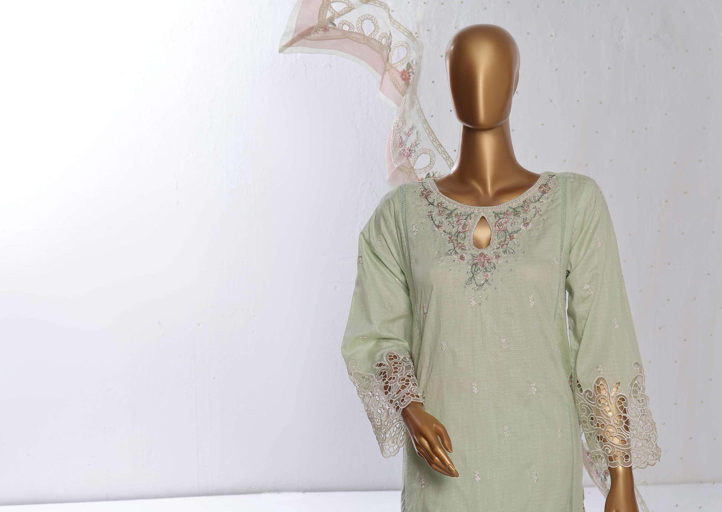 SADABAHAR Luxury EMBROIDERED Festive Collection With Chiffon EMBROIDERED Dupatta Vol 5 has been styled in the image for photography and illustrative purposes.
