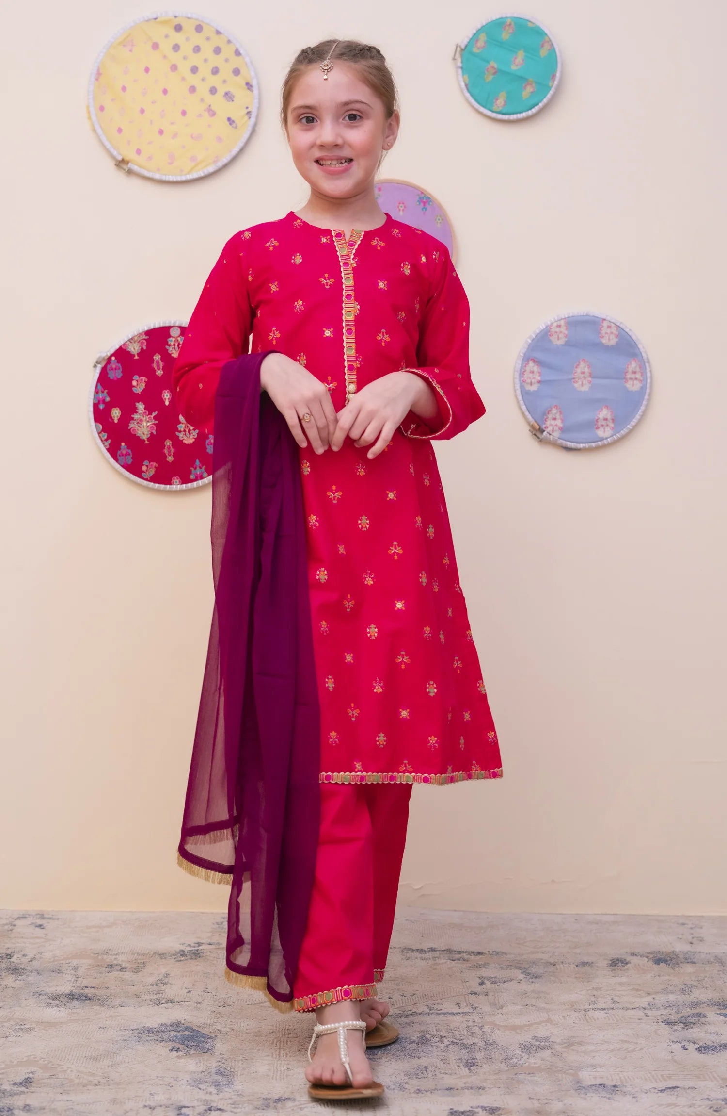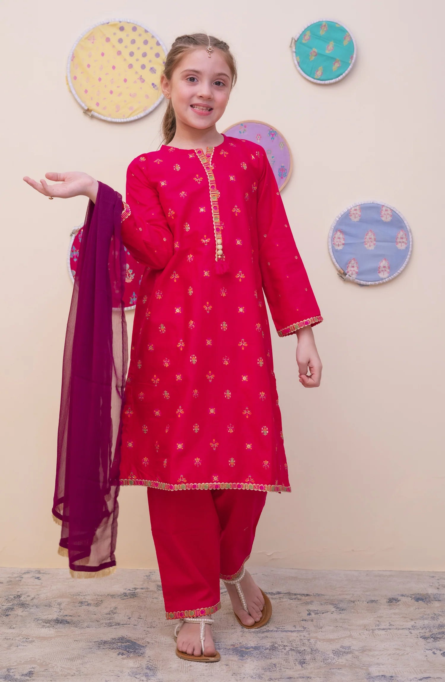 GURYA Printed Cambric 3Pec  Pret Coll'25 By SHANZEY Kids Stitch Cambric Printed Shirt Dyed Plain Trouser With Chiffon Dupatta ...