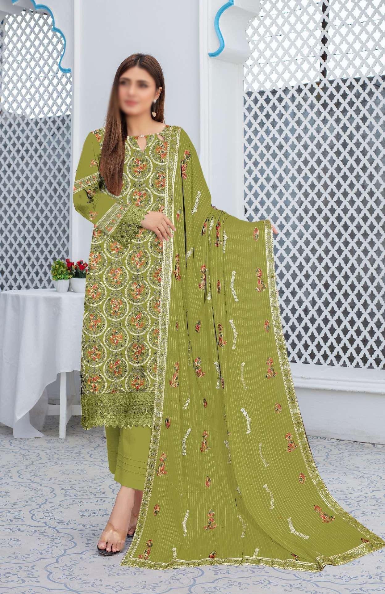 Details:Unstitched Premium Embroidered Luxury Lawn Shirt Luxury Doriya Bamber Embroidered Dupatta  With Four Side Emb Laace Patta ...