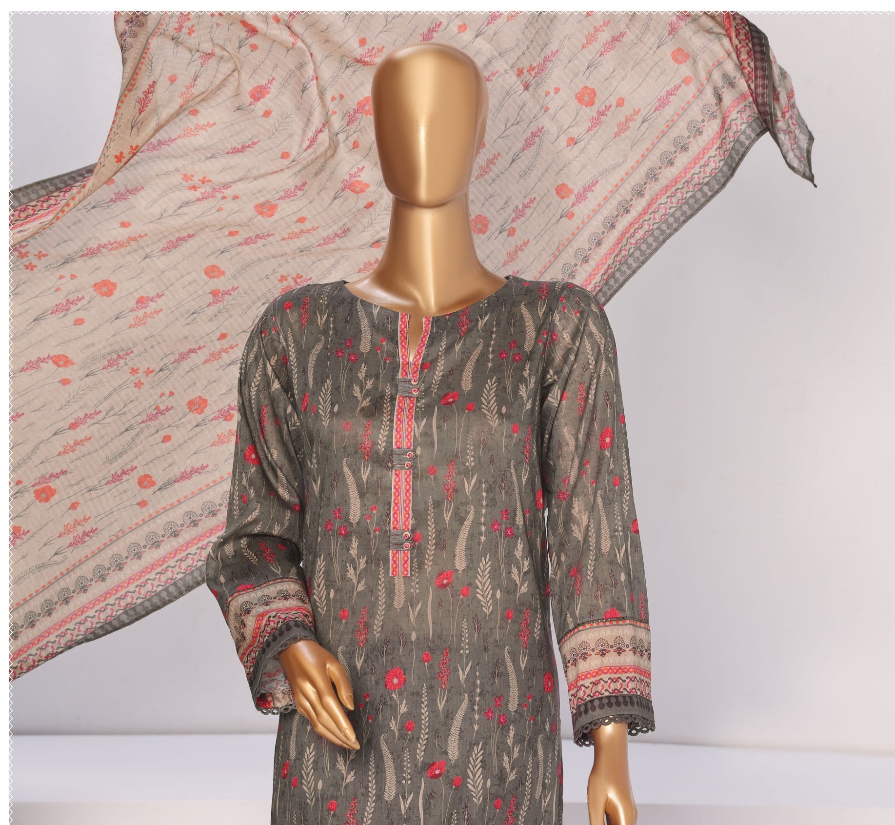 HZ Platinum Printed Lawn With Zari Dupatta Collection2025 has been styled in the image for photography and illustrative purposes.