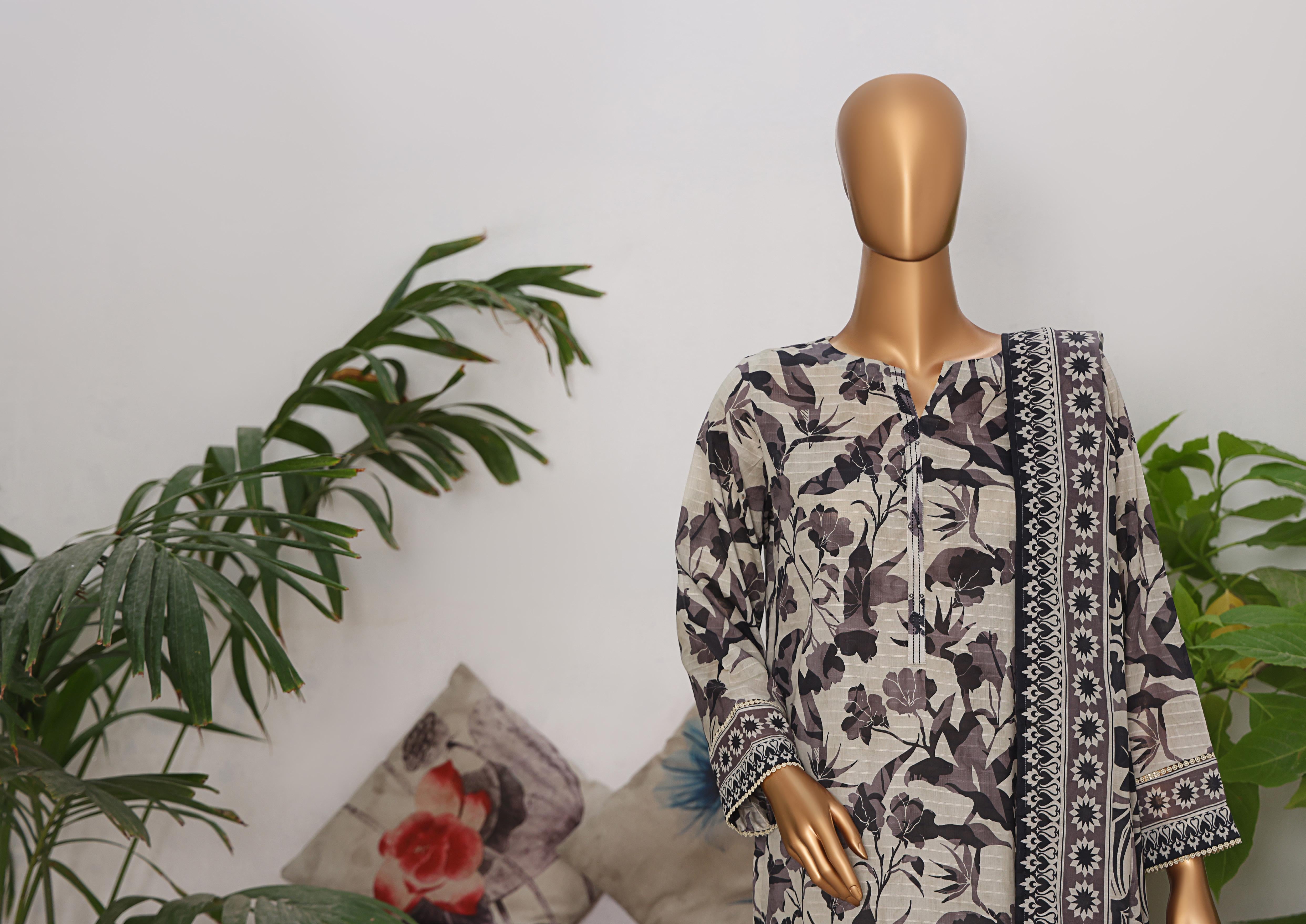Experience the perfect blend of comfort and style with our pure lawn fabric featuring a digital printed slub lawn dupatta, adding a touch of vibrant elegance to your wardrobe.