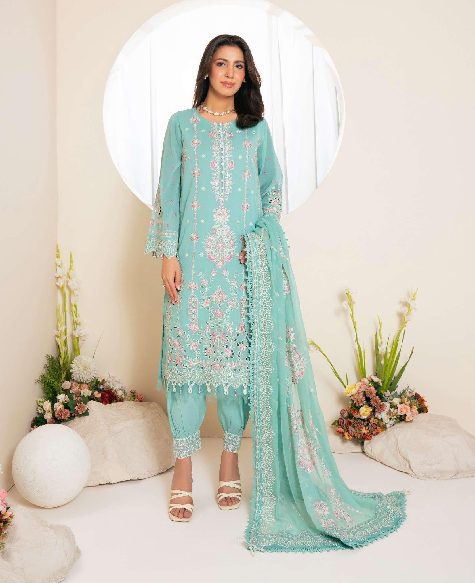 Johra Pinks Swiss  Voil Embroidered with Chiffon Dupatta Unstitched 3 Piece Collection by Johra Arts Elegant festive...
