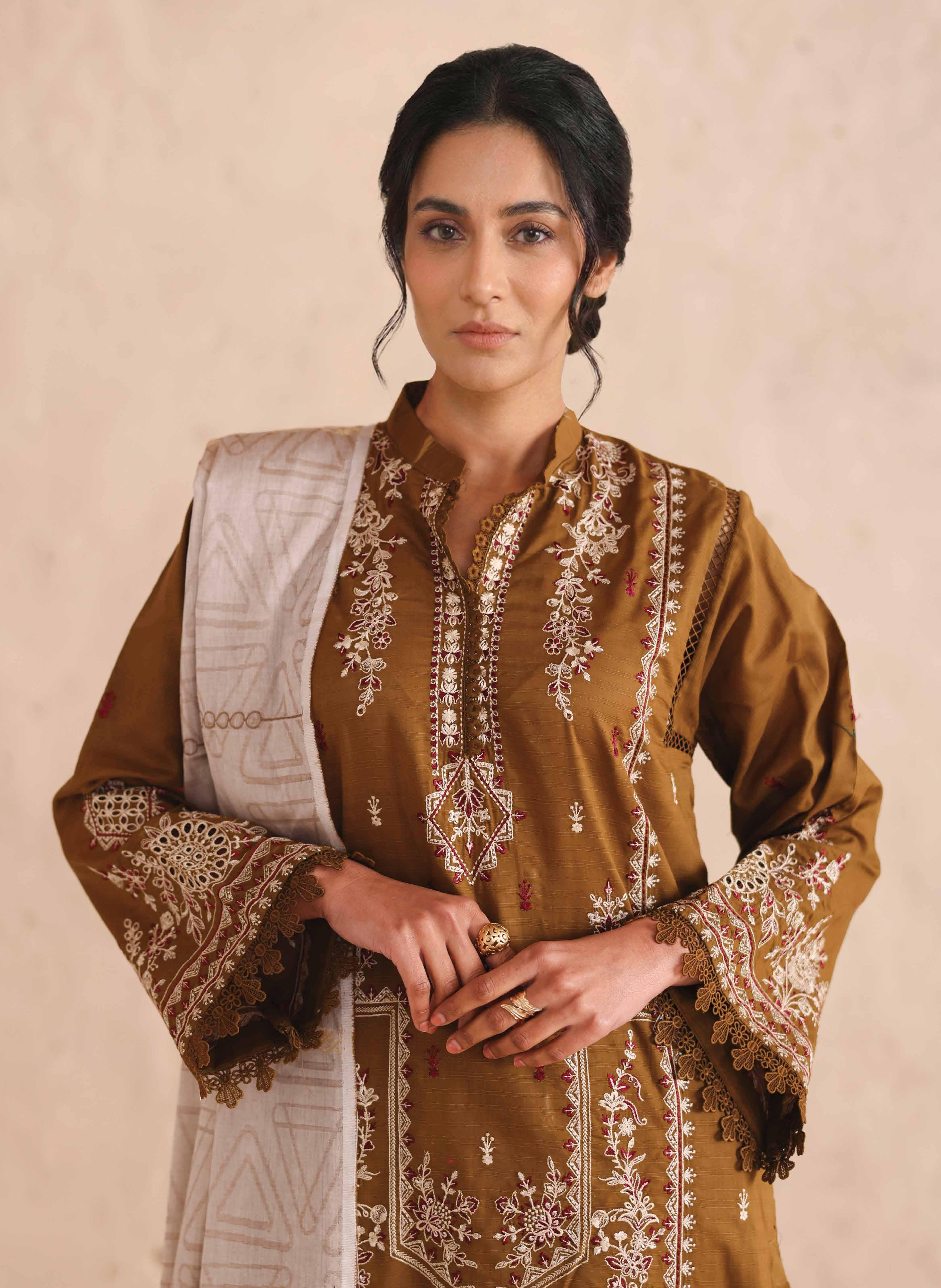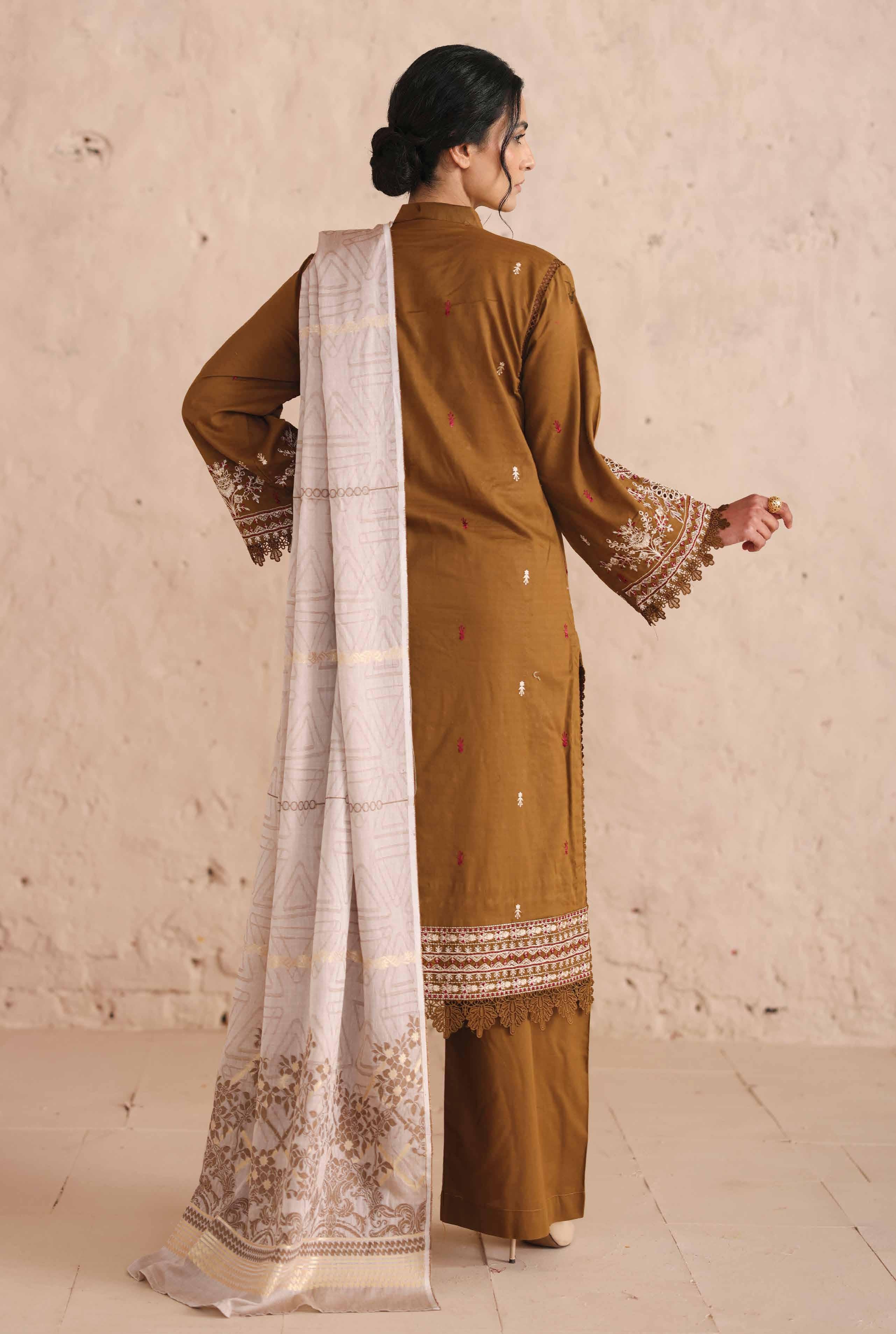 A refined unstitched lawn ensemble featuring elegant embroidery and a jacquard lawn dupatta, perfect for a graceful...