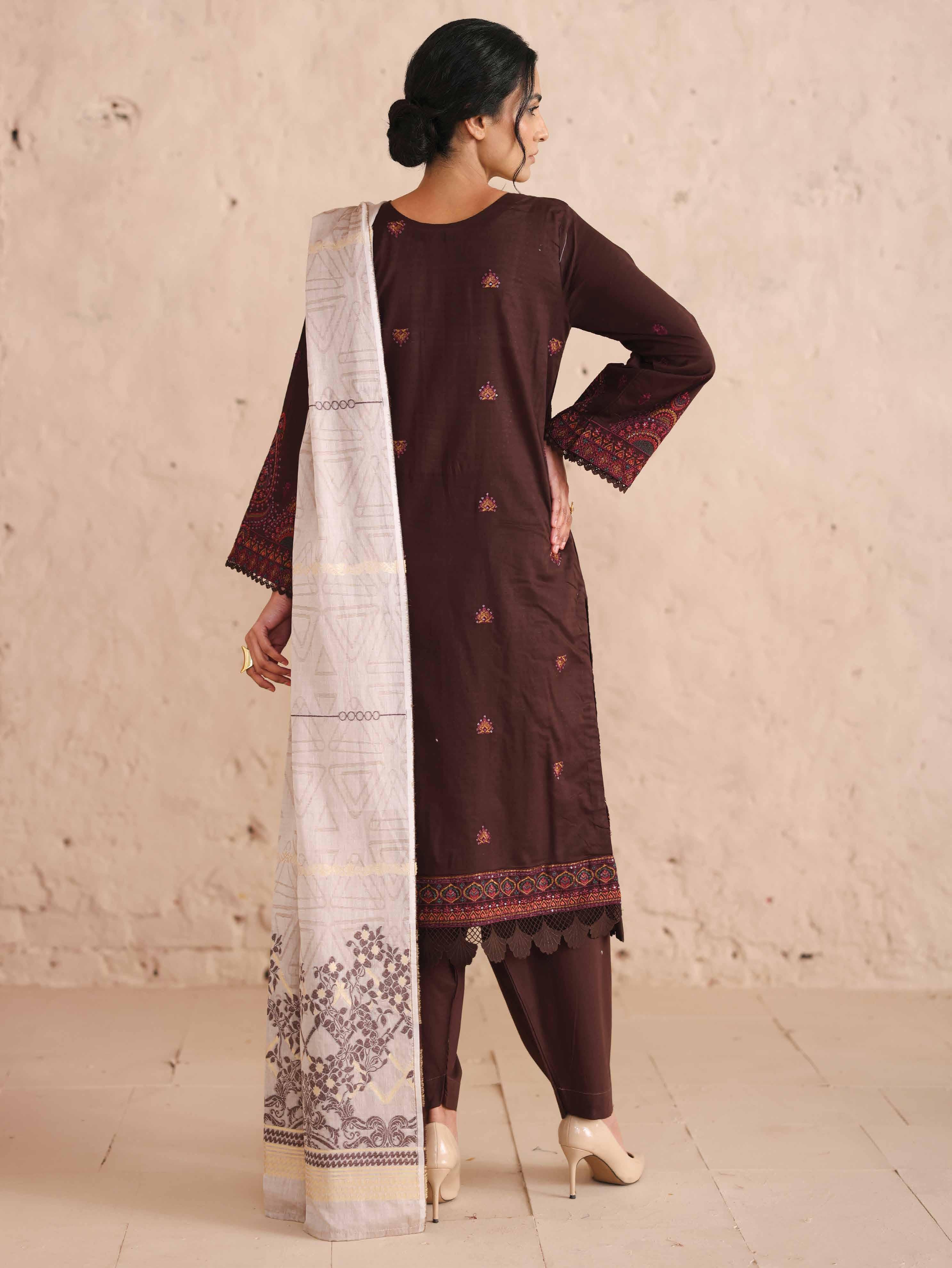 A refined unstitched lawn ensemble featuring elegant embroidery and a jacquard lawn dupatta, perfect for a graceful...