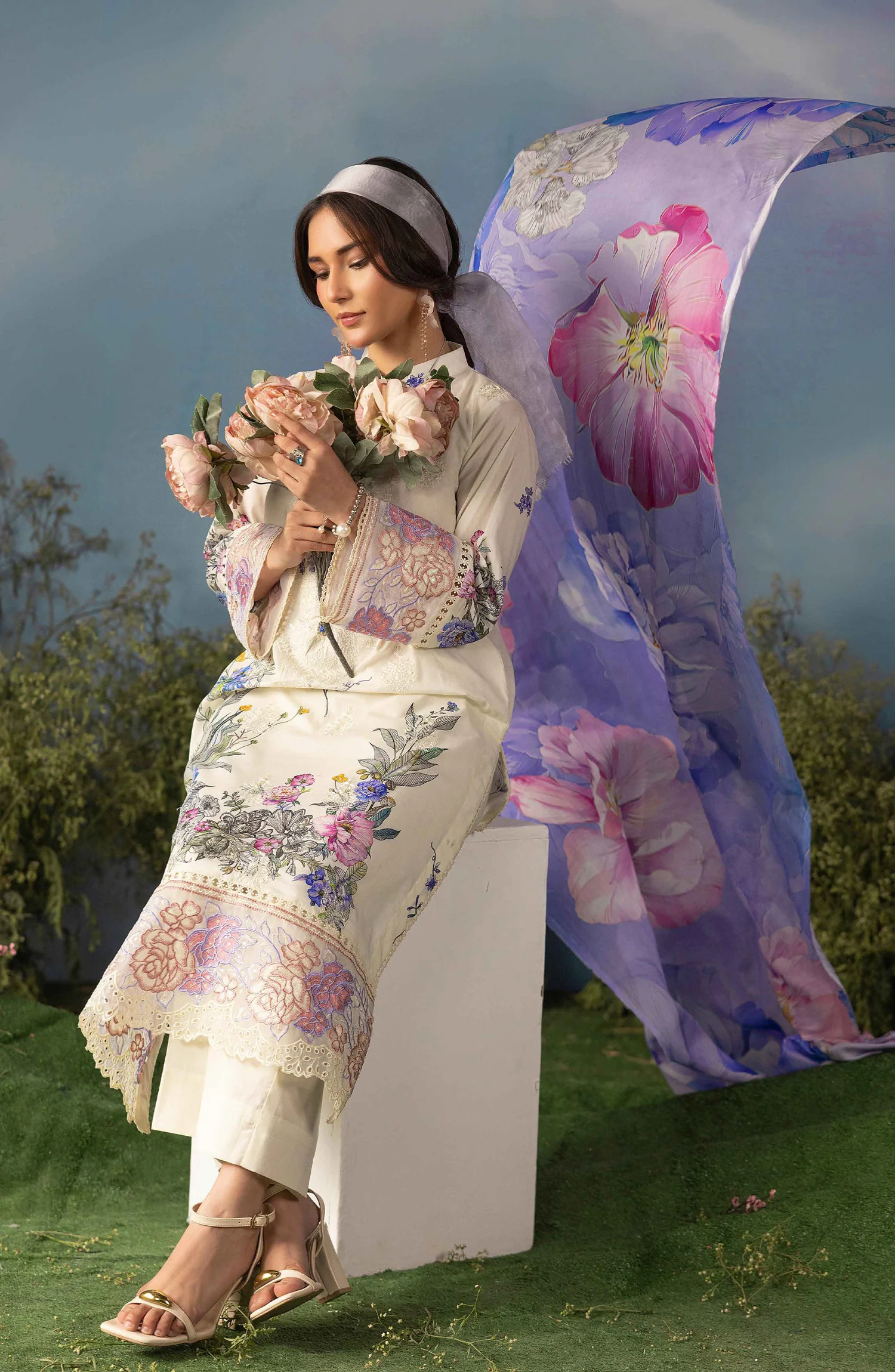 Luxury Embroidered Lawn Unstitched 3 Piece Suit Butterfly by Riaz Arts D-2