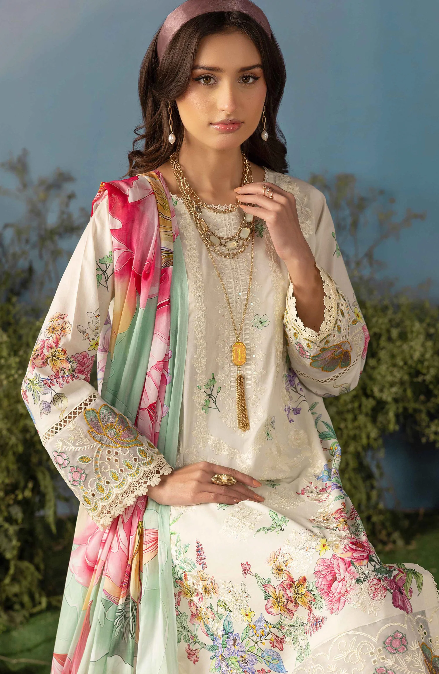 Luxury Embroidered Lawn Unstitched 3 Piece Suit Butterfly by Riaz Arts D-3