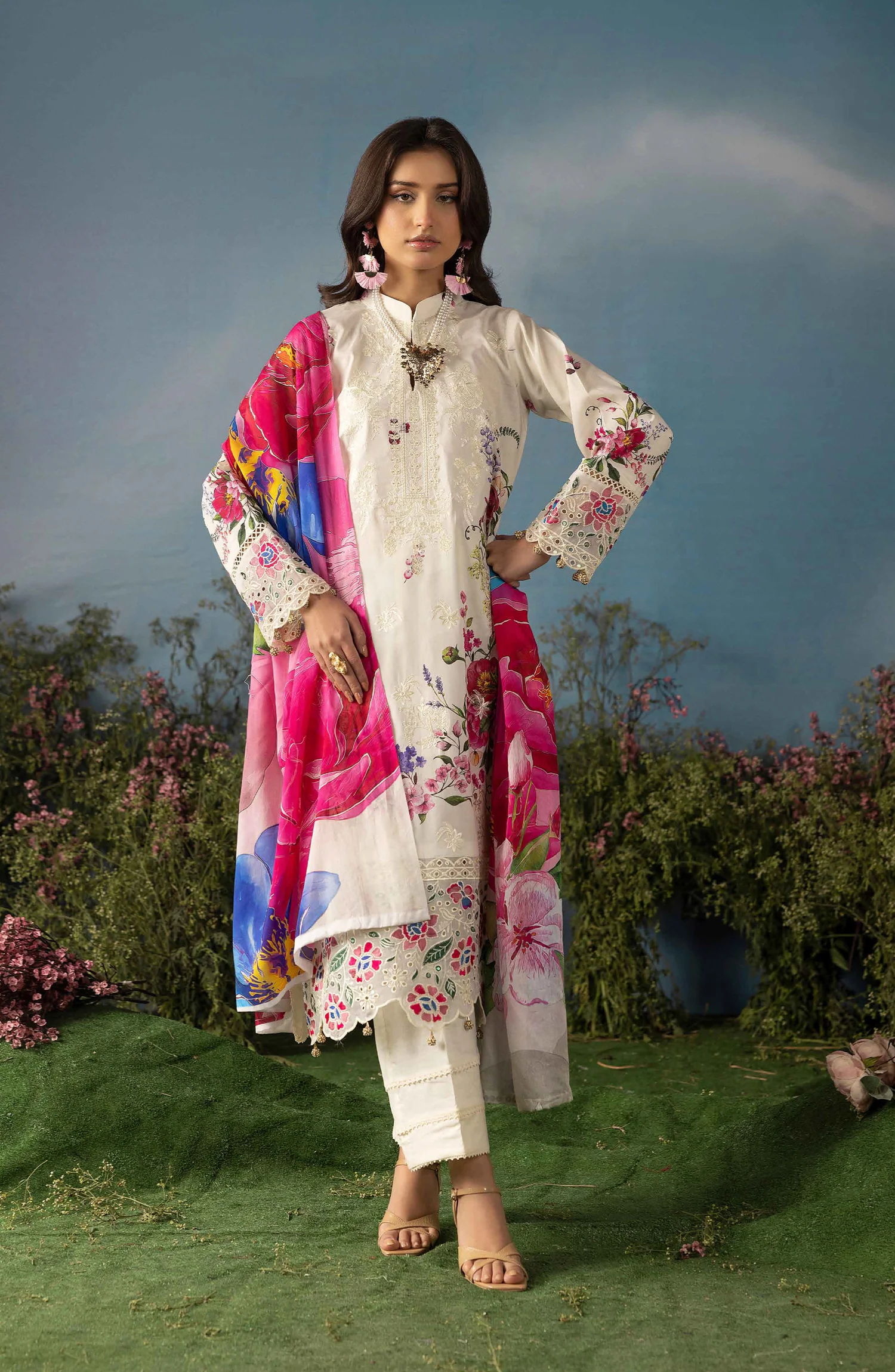 Luxury Embroidered Lawn Unstitched 3 Piece Suit Butterfly by Riaz Arts D-7