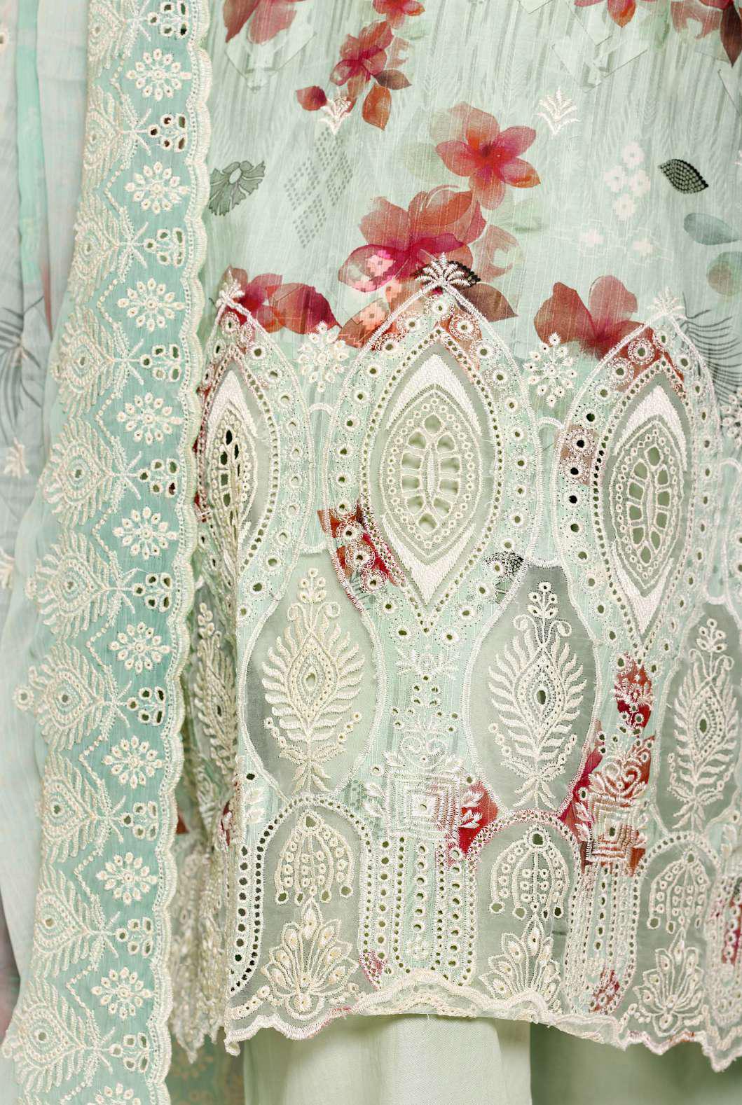 A luxury fusion festive collection featuring heavy cut work Chikankari embroidery on premium lawn fabric, paired with...