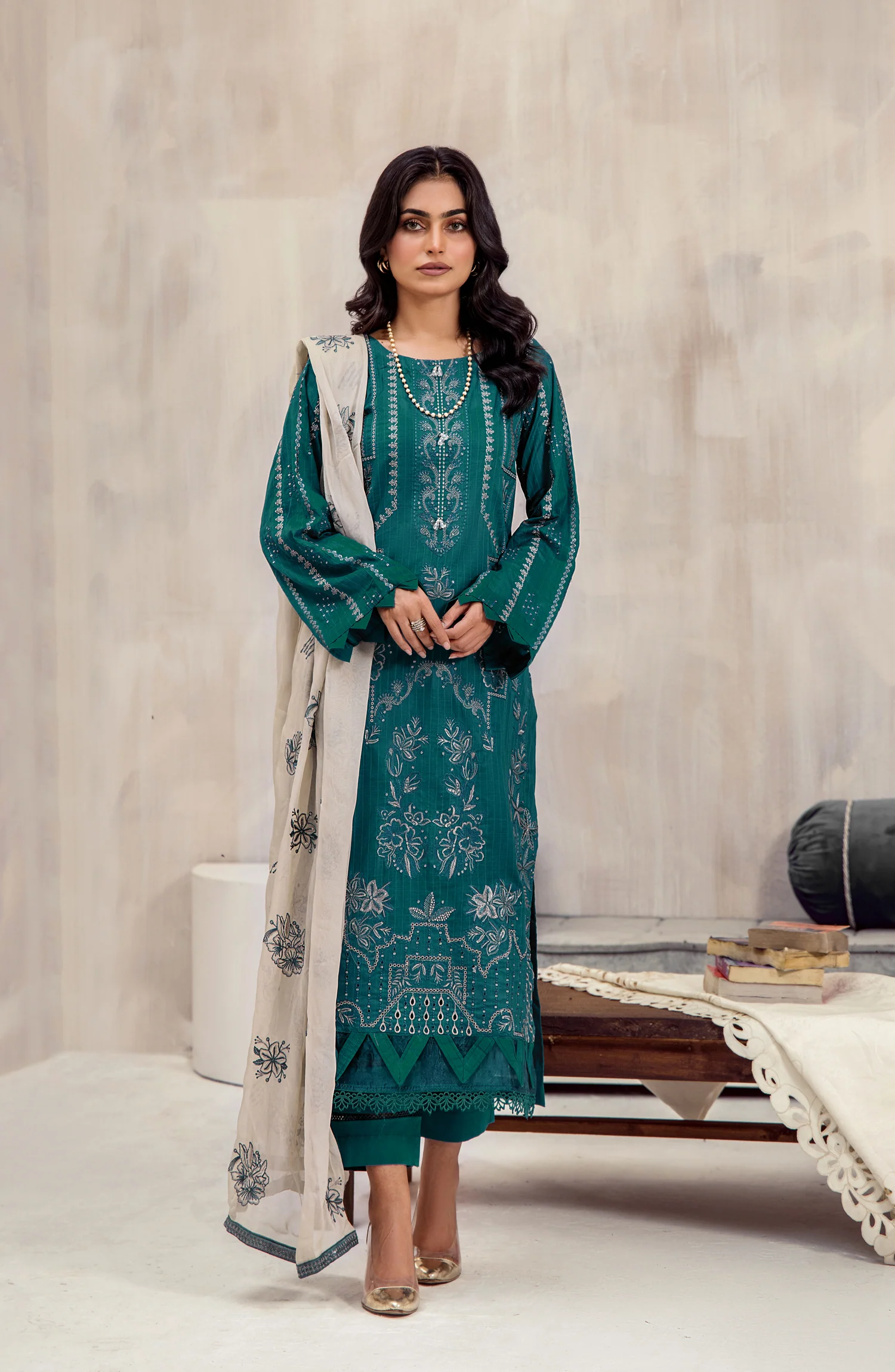 Marjjan Luxury Embroidered Viscose Unstitched 3 Piece Suit Winter Collection Description DYED SILK VISCOSE SEQUINS EMBROIDERED FRONT...