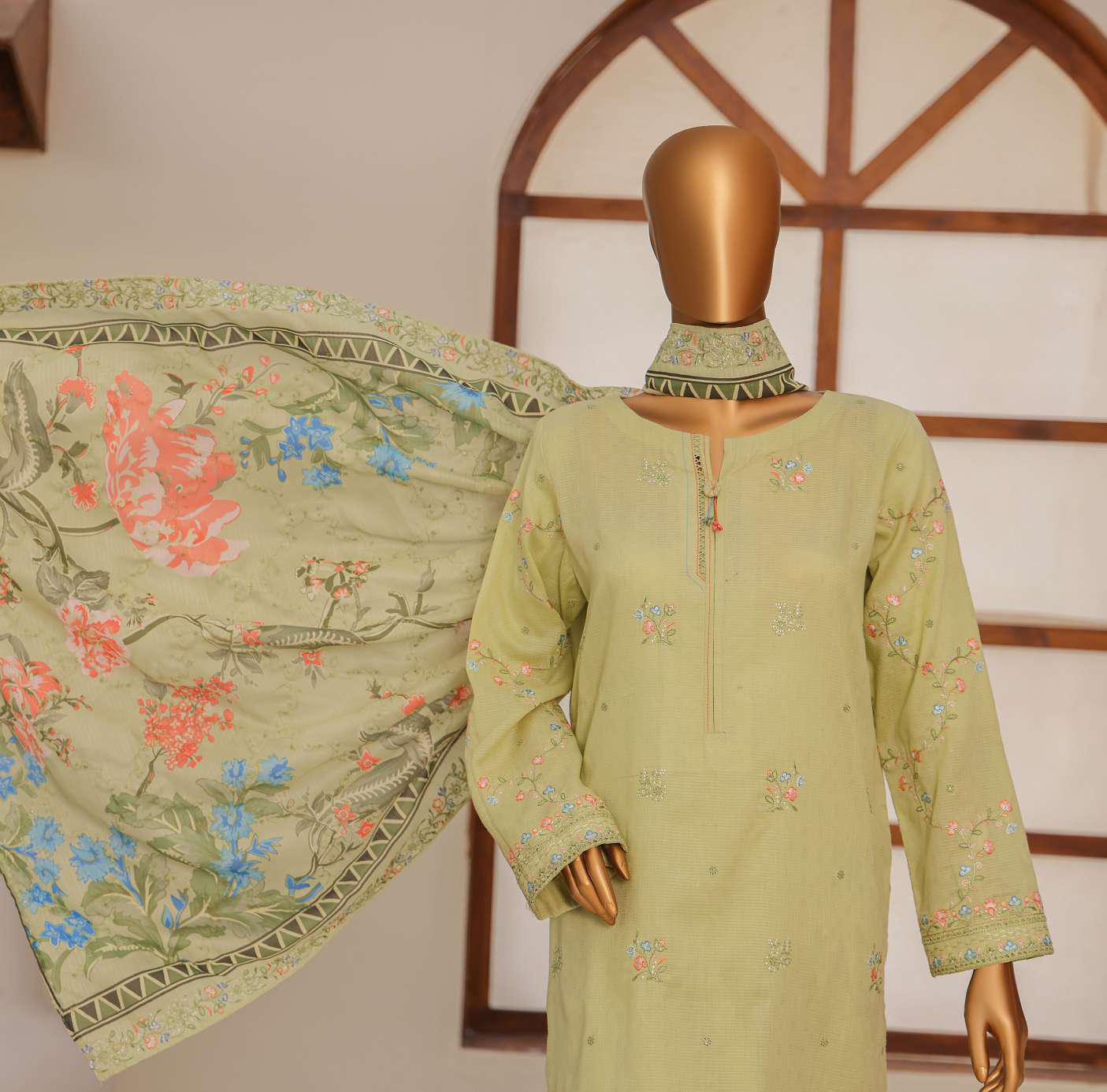DYED DOBBY EMBROIDERED TROUSER UN STITCHED
