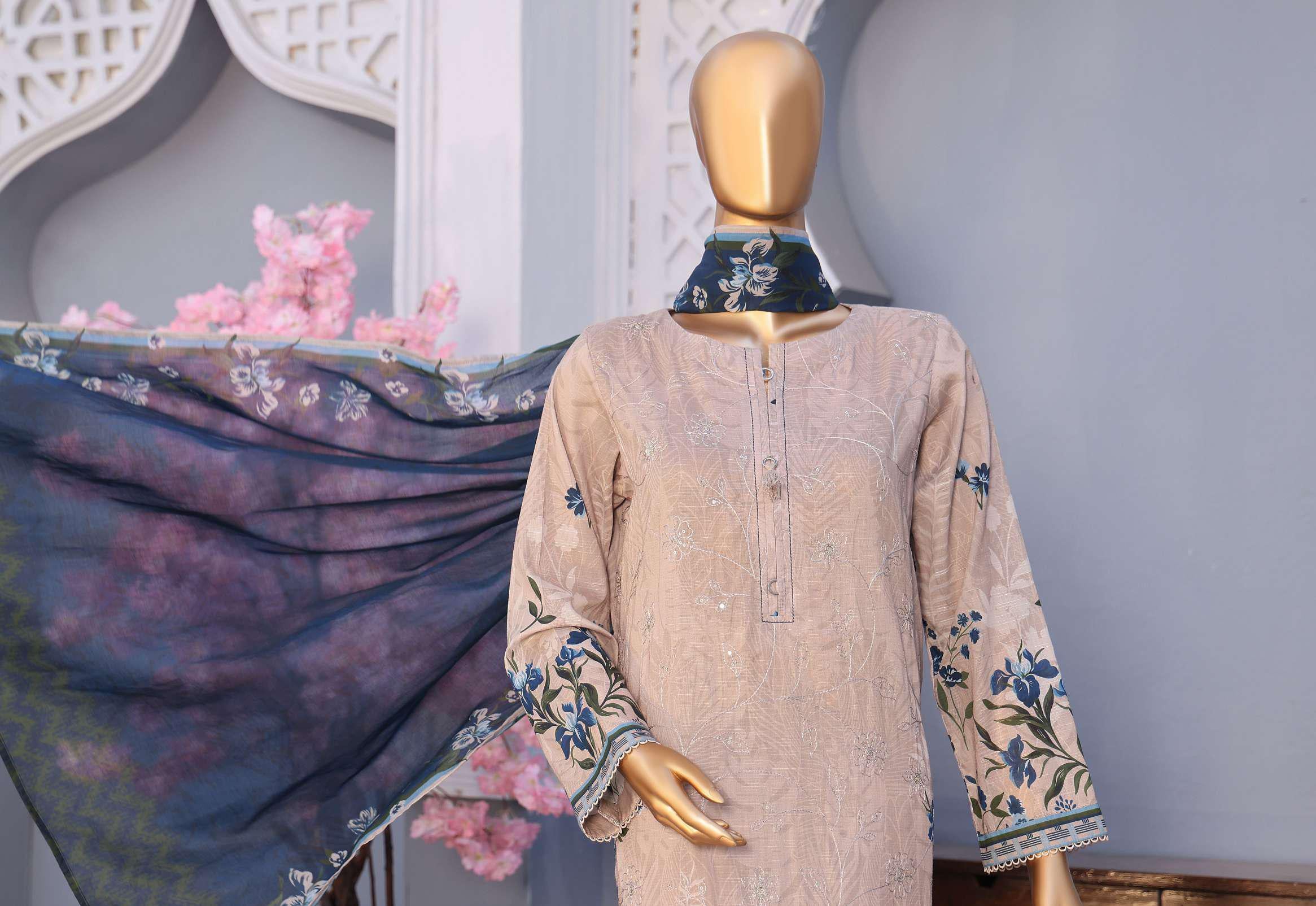 Mehak Cross Slub Embroidered Collection Un-Stitched 3Pc By Hz Textile D-4