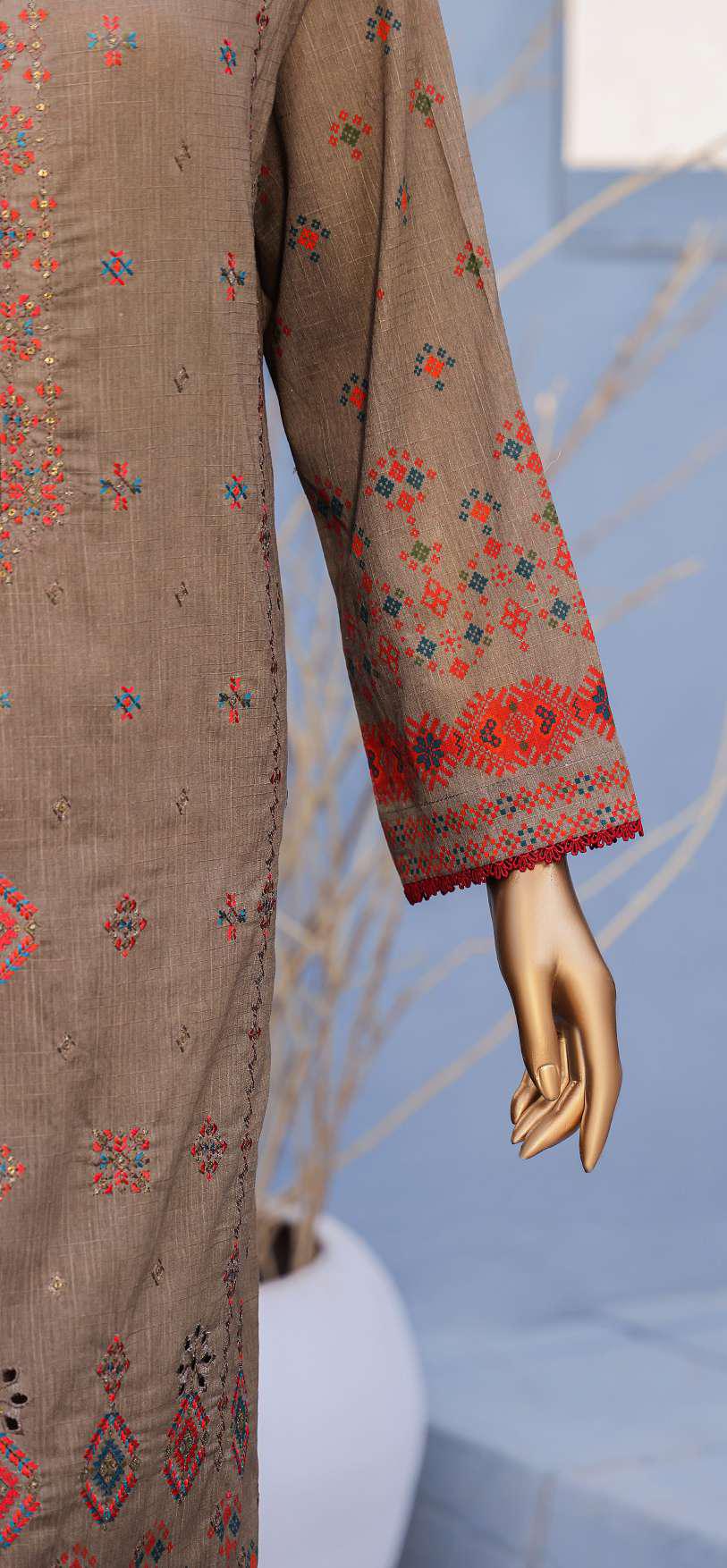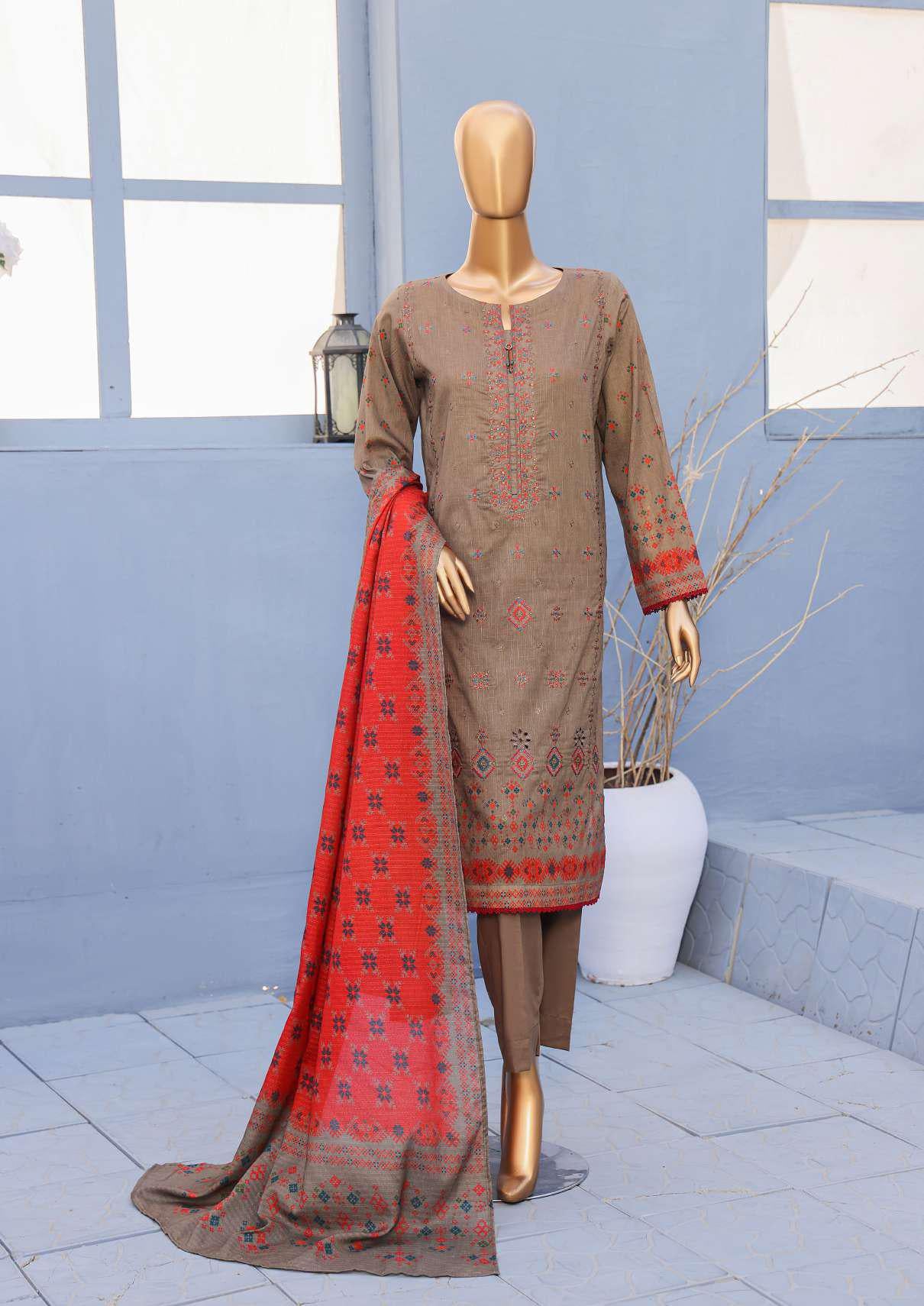 Mehak Cross Slub Embroidered Collection Un-Stitched 3Pc By Hz Textile D-6