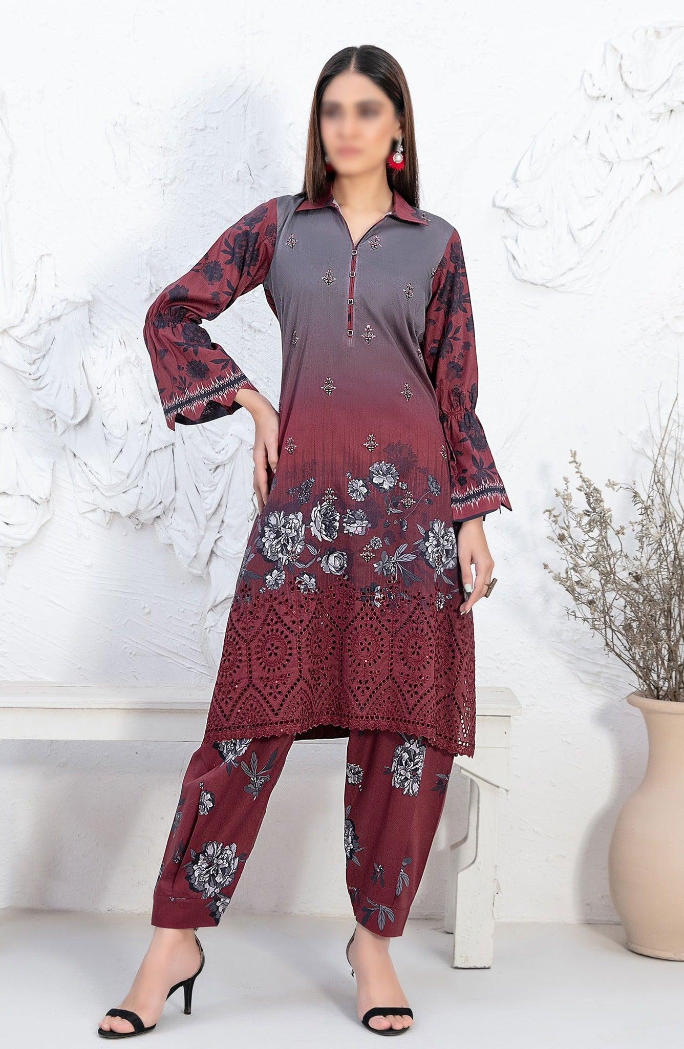 Un-Stitched 2 Pcs Details:Un-Stitched Laserkari Daman Embroidered Digital Printed Lawn ShirtUnstitched Digital Printed Cotton Shalwar