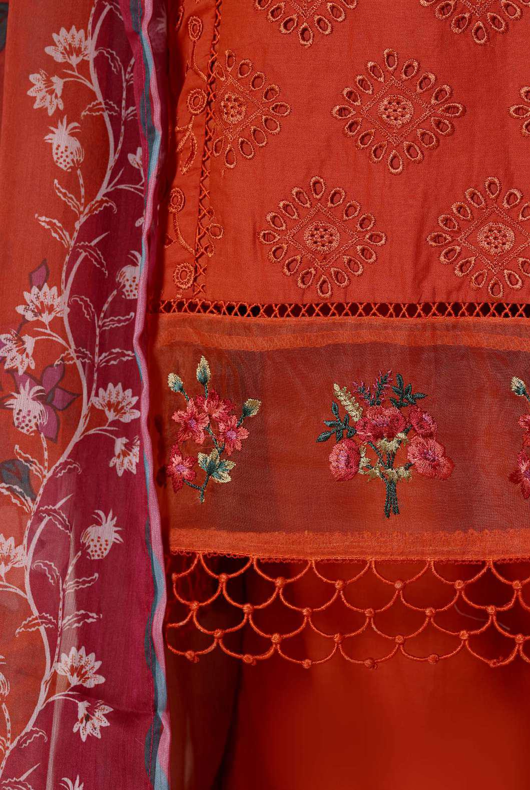 An elegant festive luxury lawn ensemble featuring heavy multi chickenkari embroidery paired with a digital printed chiffon...