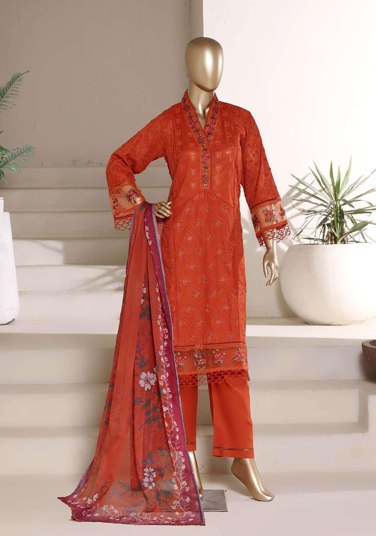 Multi Chickenkari by Sadabahar | Heavy Embroidered Lawn 3 Piece Stitched Suit D-6