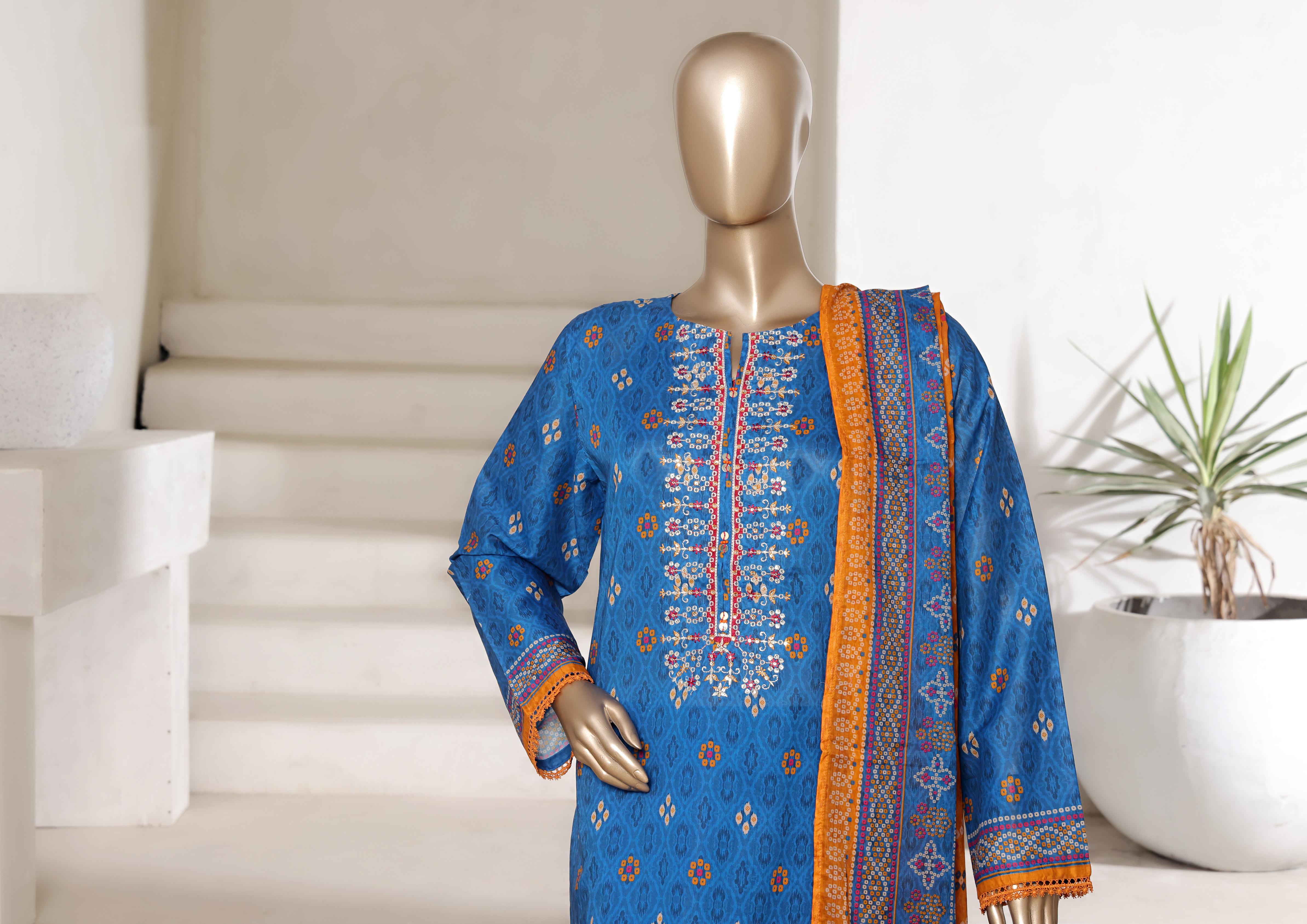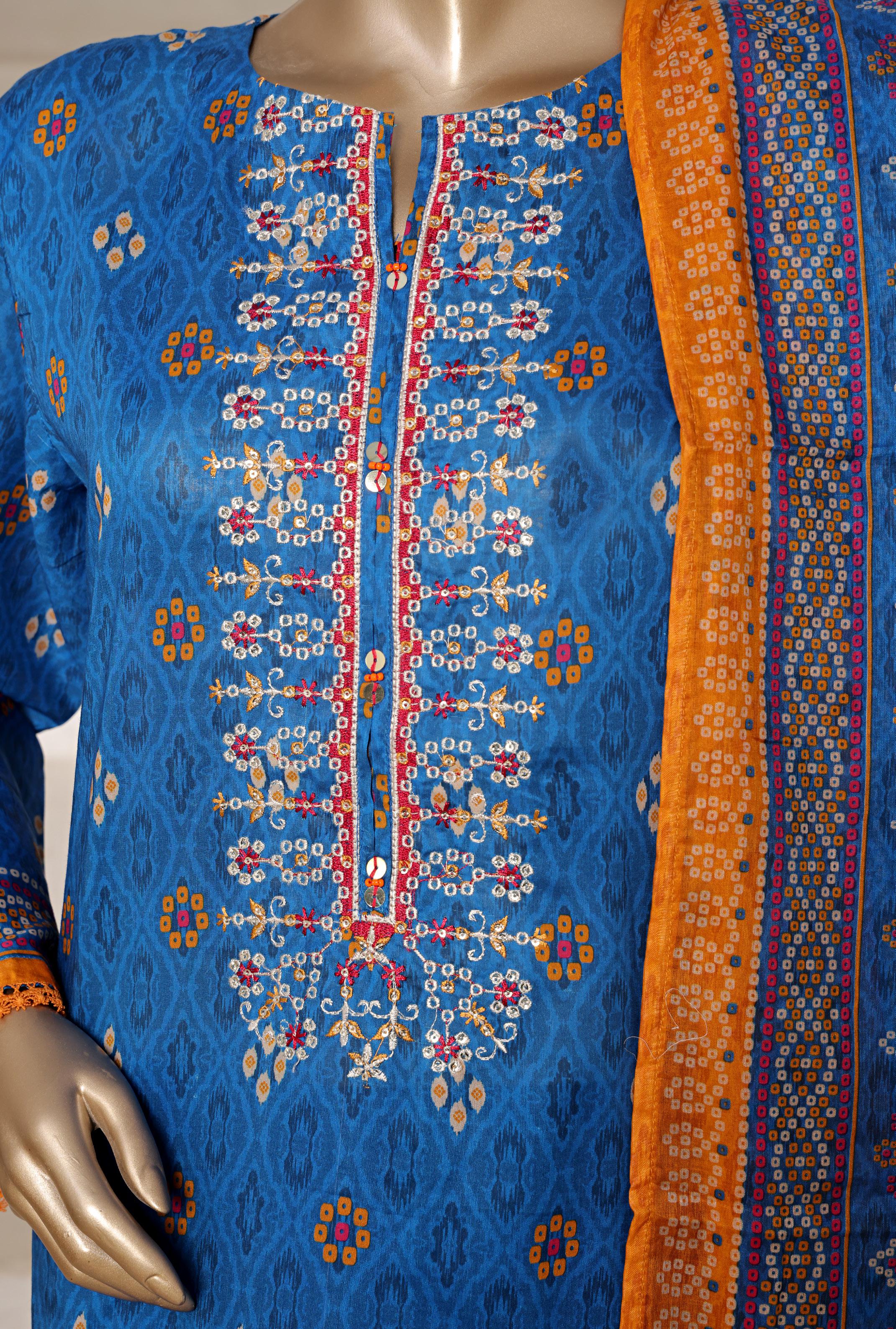 Digital Print Cotton Lawn 3 Piece Stitch Suit with Embellishments
