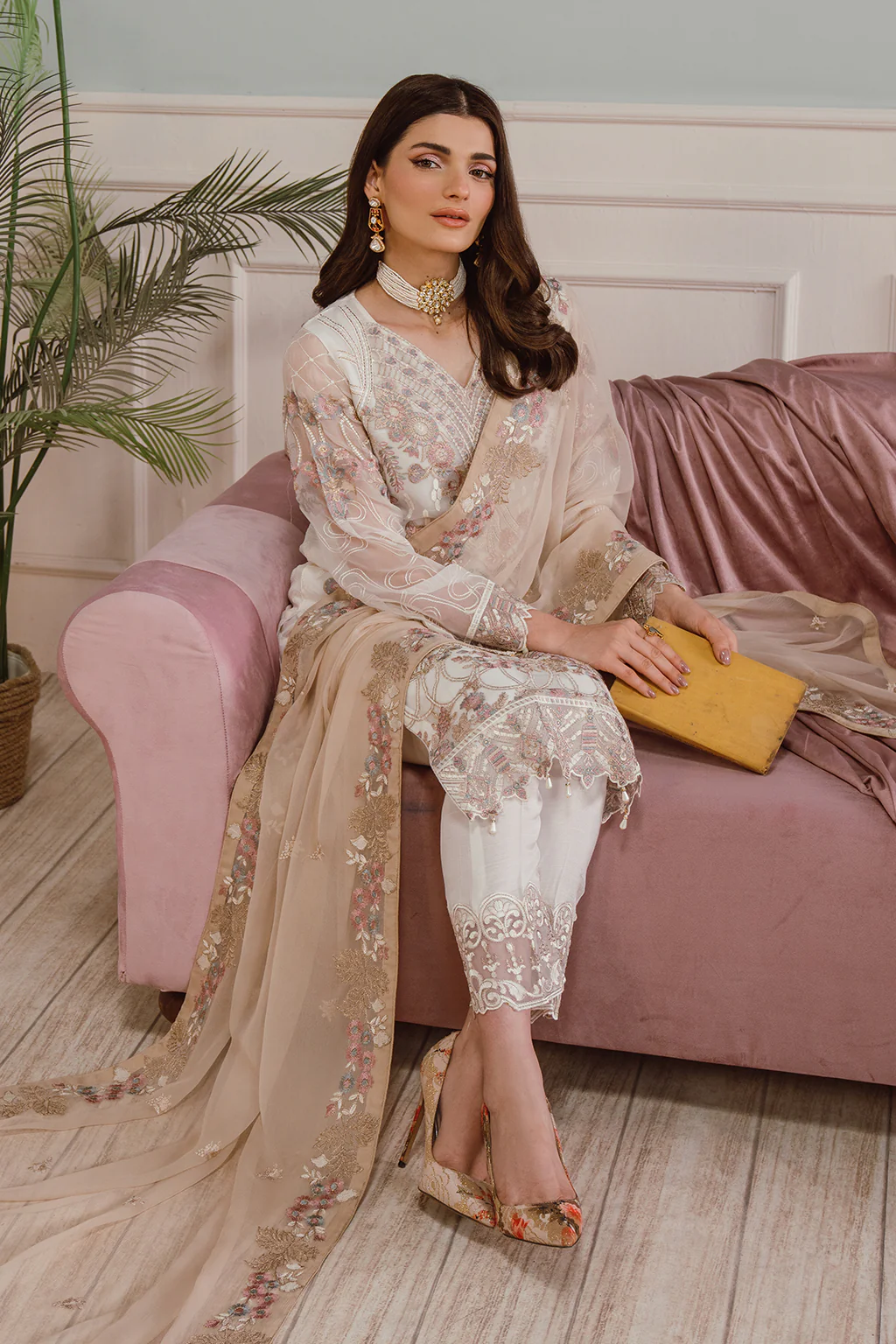 Embroidered Chiffon front with sequinsEmbroidered Chiffon backEmbroidered Chiffon sleevesEmbroidered organza sleeves laceEmbroidered organza ghera laceEmbroidered net dupatta...