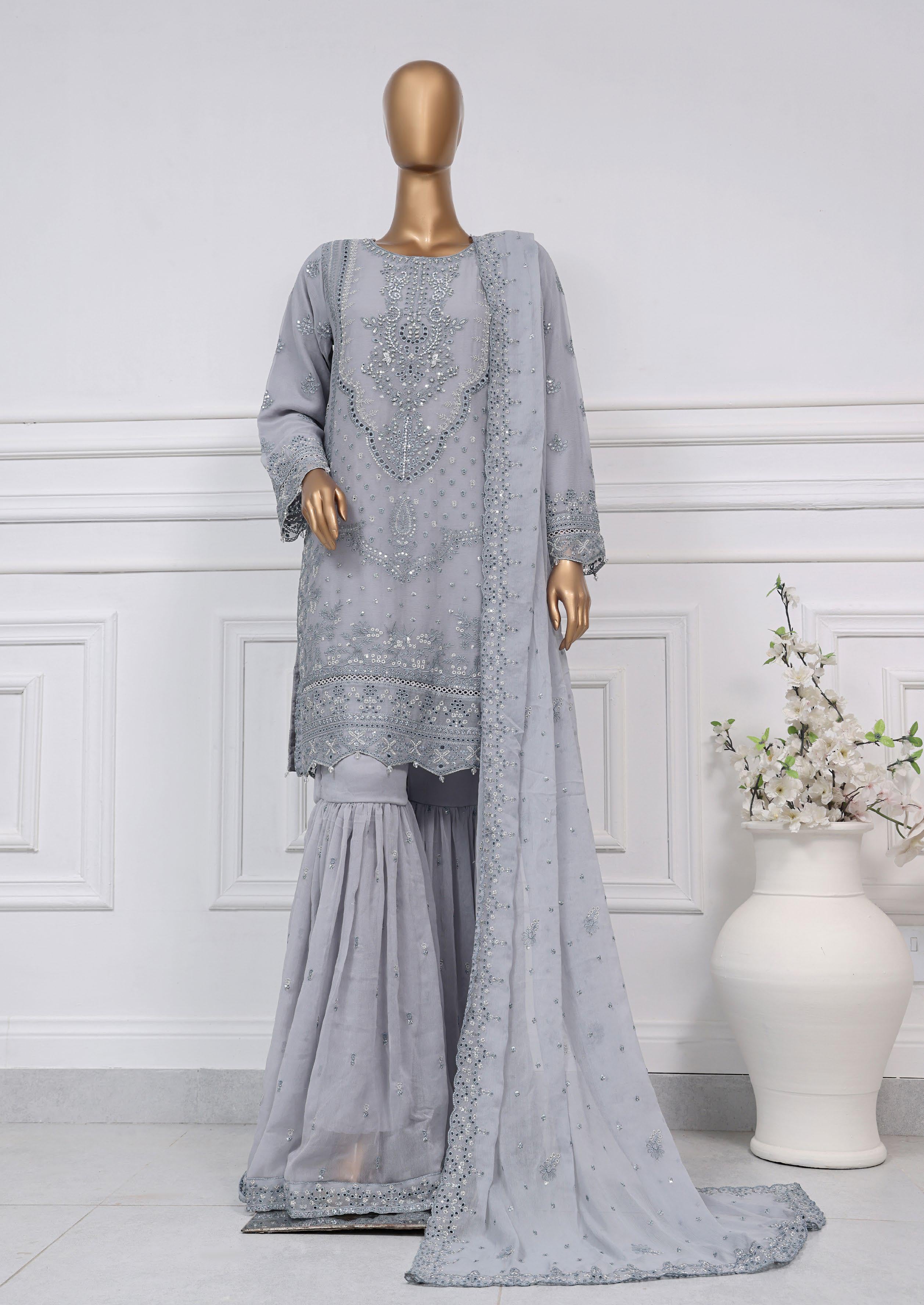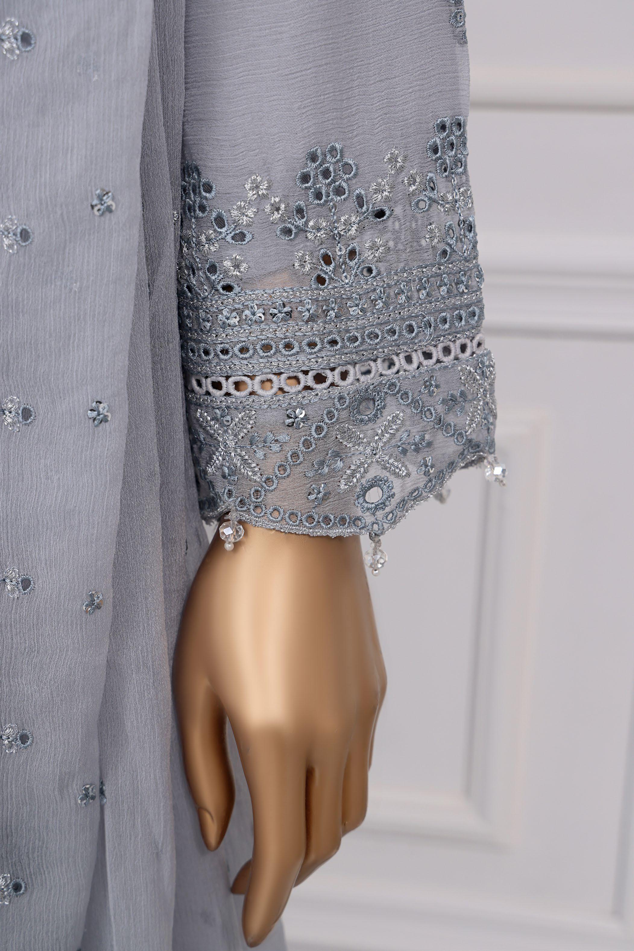 Chiffon Embroidered Shirt Stitched Chiffon Embroidered DupattaRaw Silk Trouser Stitched  Sadabahar Afsanay Vol 12  Luxury Chiffon Collection2025 has...