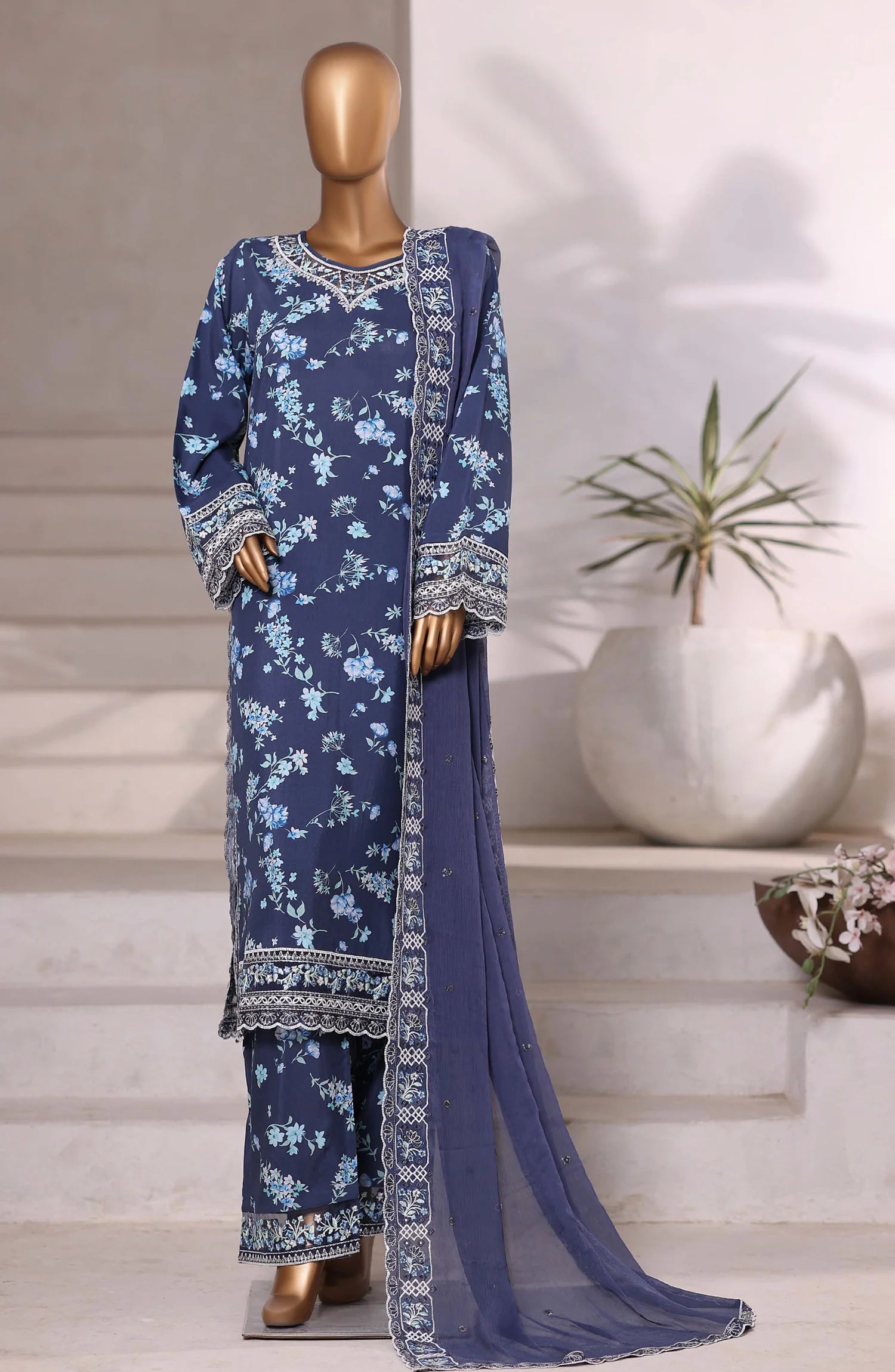 Sadabahar Luxury Embroidered Viscose Stitched 3 Piece Suit Winter Collection  Viscose Embroidered Shirt  Embroidered Chiffon Dupatta Digital...
