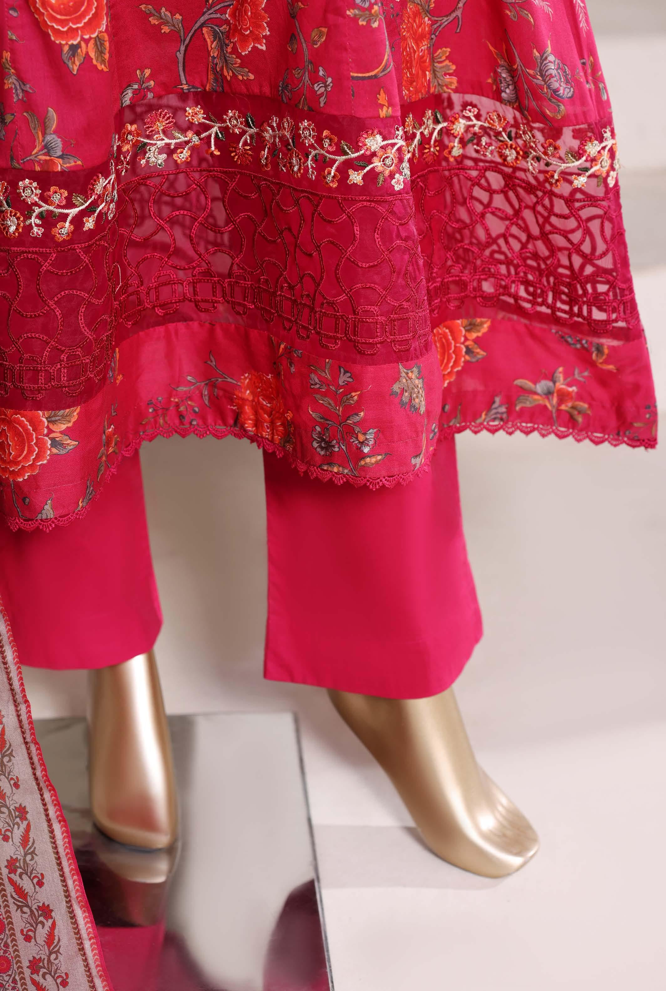 A stylish 3 piece stitched peplum lawn outfit featuring heavy embroidery paired with a digital printed chiffon...