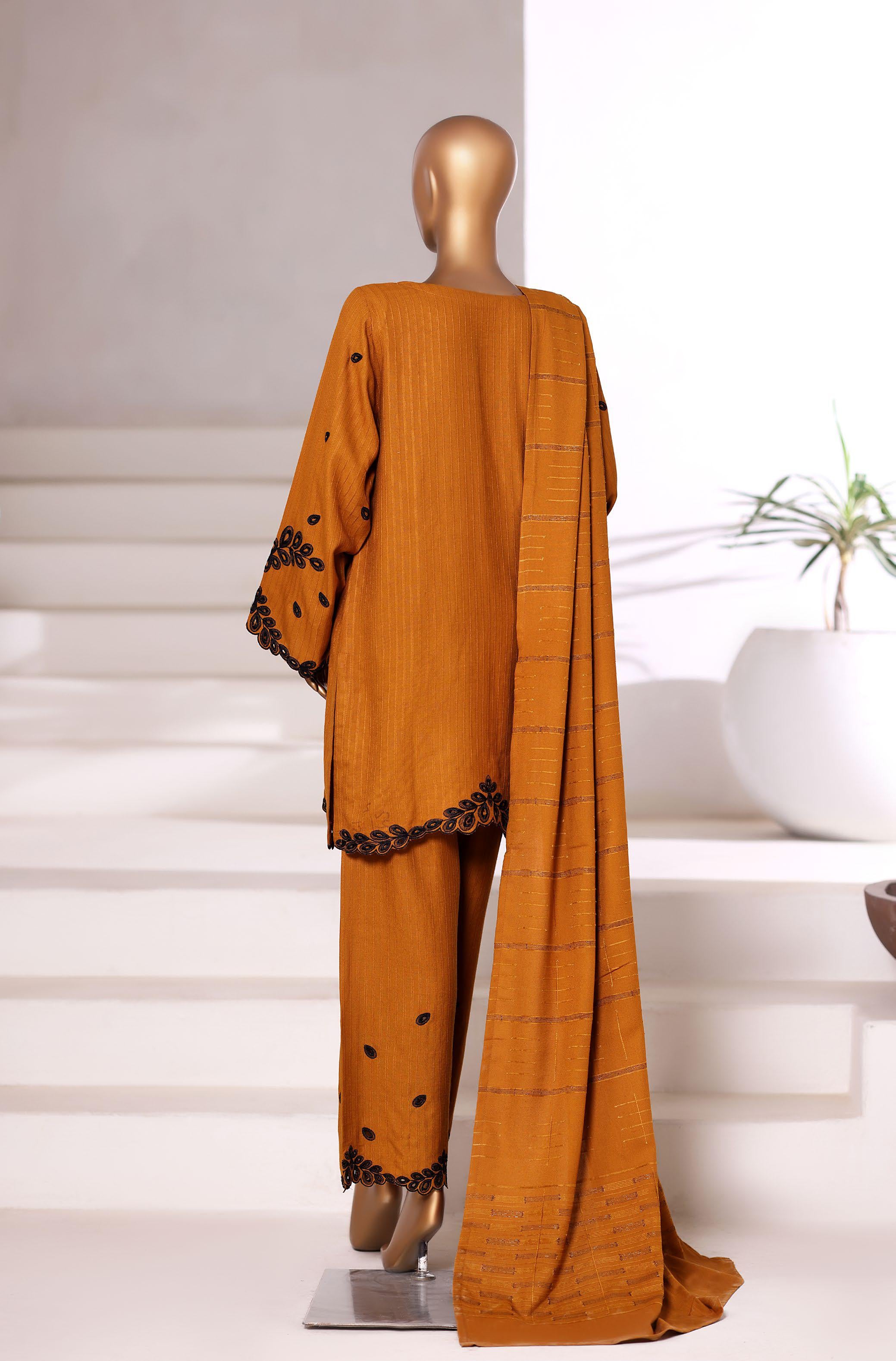 Fabric Details Stitched Embroidered Dhanak Shirt with Dhanak Shawl & Matching Embroidered Stitched Trouser
