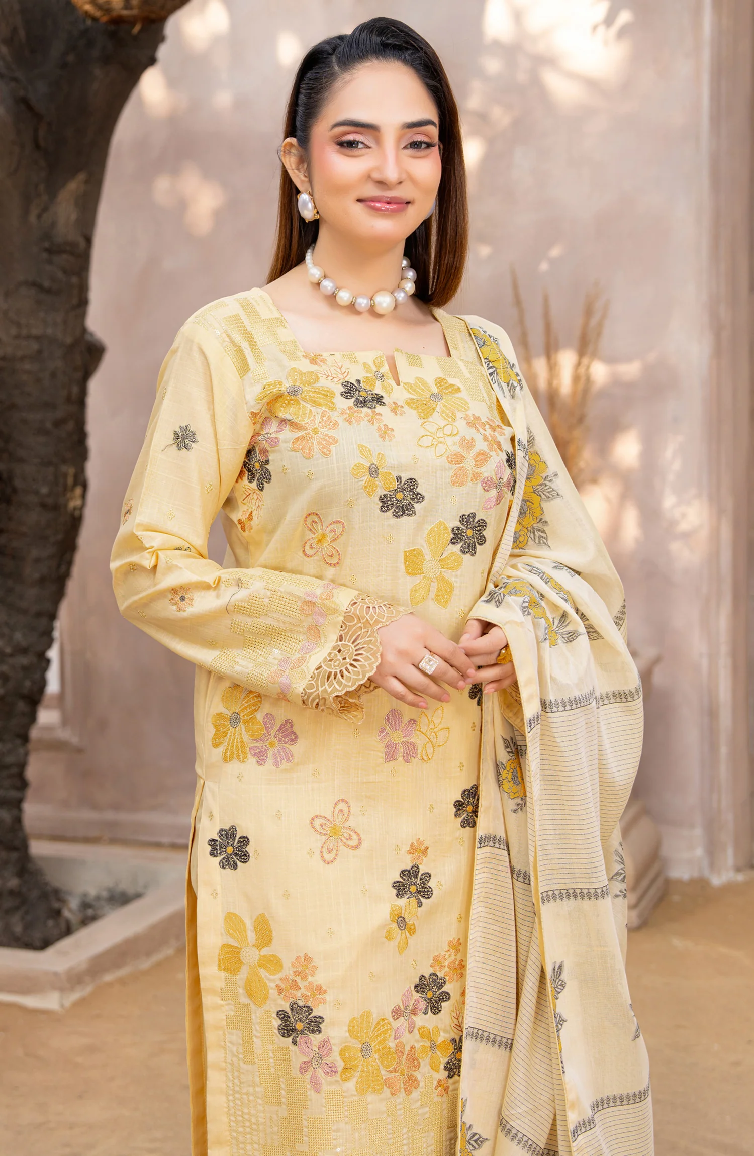 Graceful Summer Luxury with an Embroidered Fancy Slub Shirt and Dyed Yarn Voile Dupatta. Details: Fancy Slub...