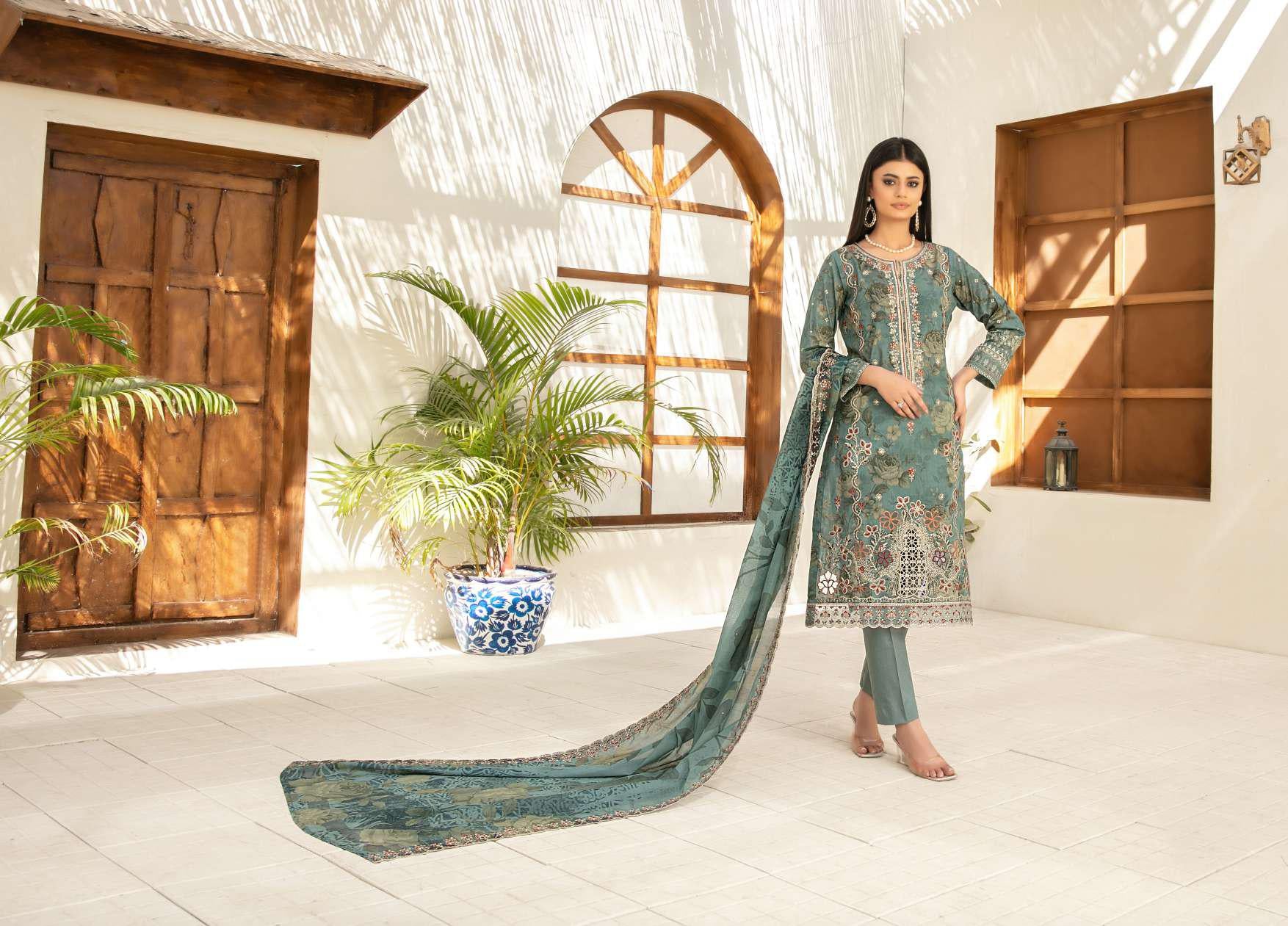A festive unstitched lawn collection featuring exclusive embroidered digital printed lawn.